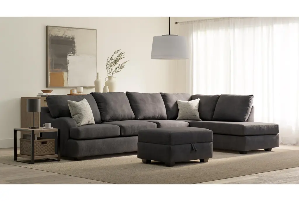 With plenty of seating options that welcome you to spread out and curl up, our Esteban collection brings a sense of ease and relaxation. The Esteban sectional and ottoman feature soft silhouettes that inspire inviting comfort and casual appeal you're sure to love. Made by and for Living Spaces to offer the utmost quality and value, the pieces are distinguished by ultra-soft and durable polyester chenille fabric, plus the sectional's loose reversible cushions that ensure even wear and longevity. Multiple colors and configurations allow you to choose the perfect fit for your space.