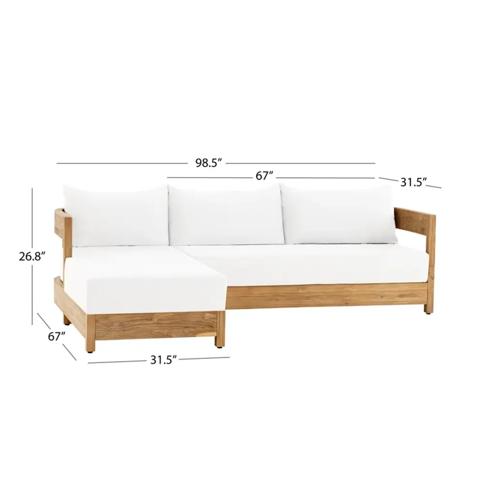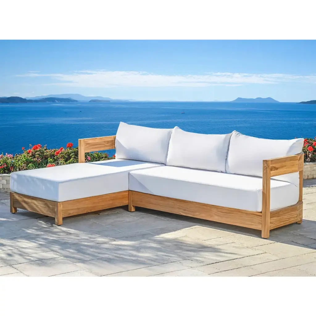 Experience luxury in your outdoor space with the Everlee Outdoor 2-Piece Sectional. Crafted from FSC Certified teak, this California Coastal inspired sectional is both stylish and sustainable. Relax in comfort with high density foam cushioning, while Sunbrella fabric ensures durability and fade resistance. Perfect for any weather.
