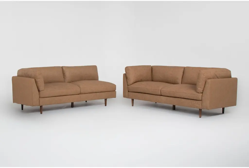 Ewan Caramel Brown Leather 2 Piece 114" Sectional With Left Arm Facing Sofa