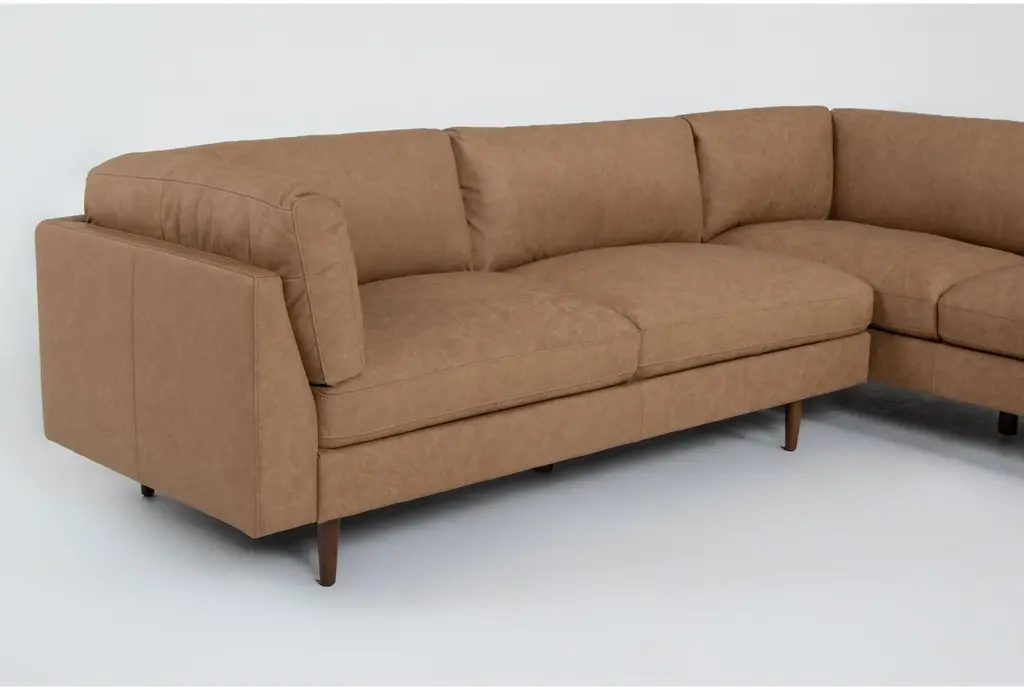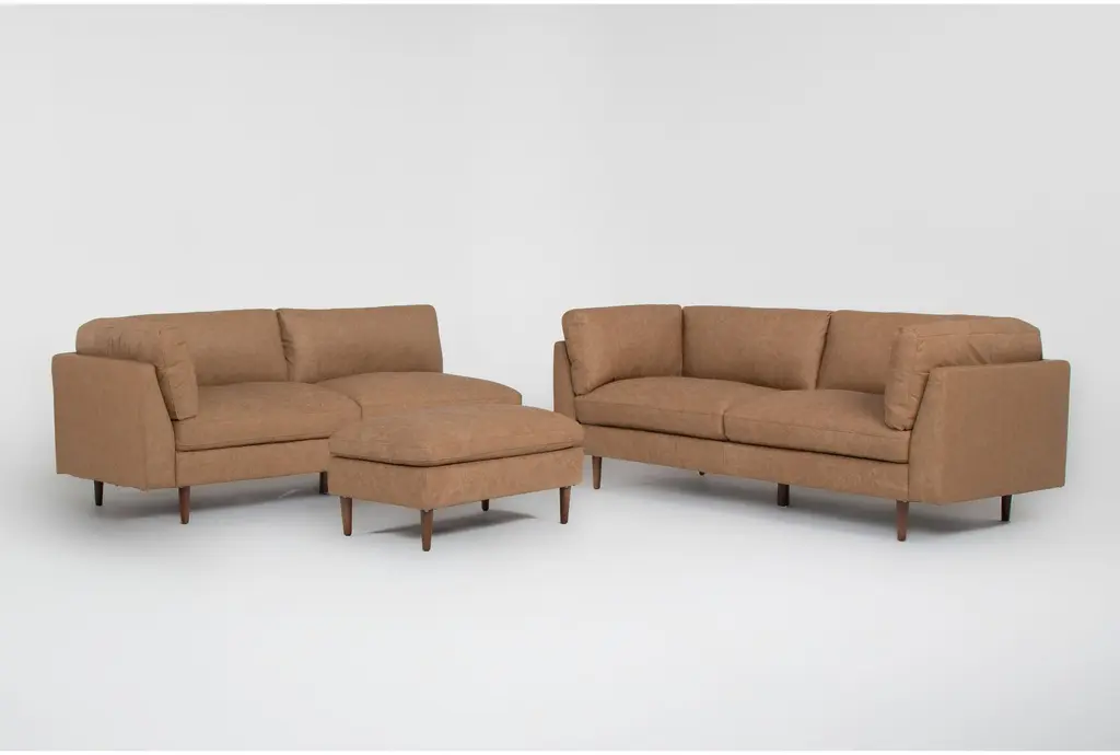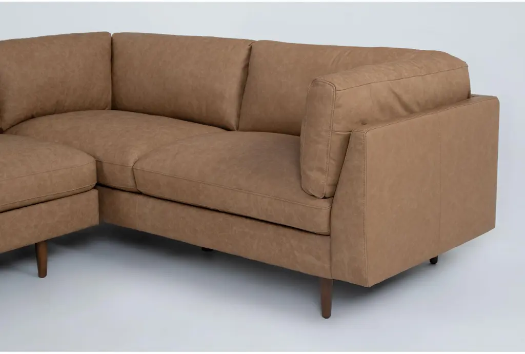 Ewan Caramel Brown Leather 2 Piece 114" Sectional With Left Arm Facing Sofa Chair & Cocktail Ottoman