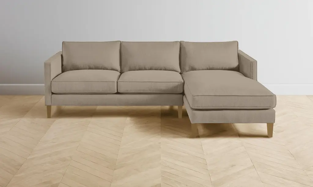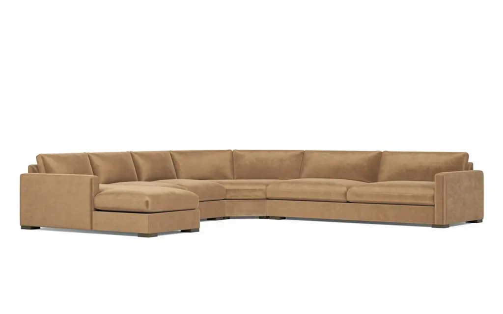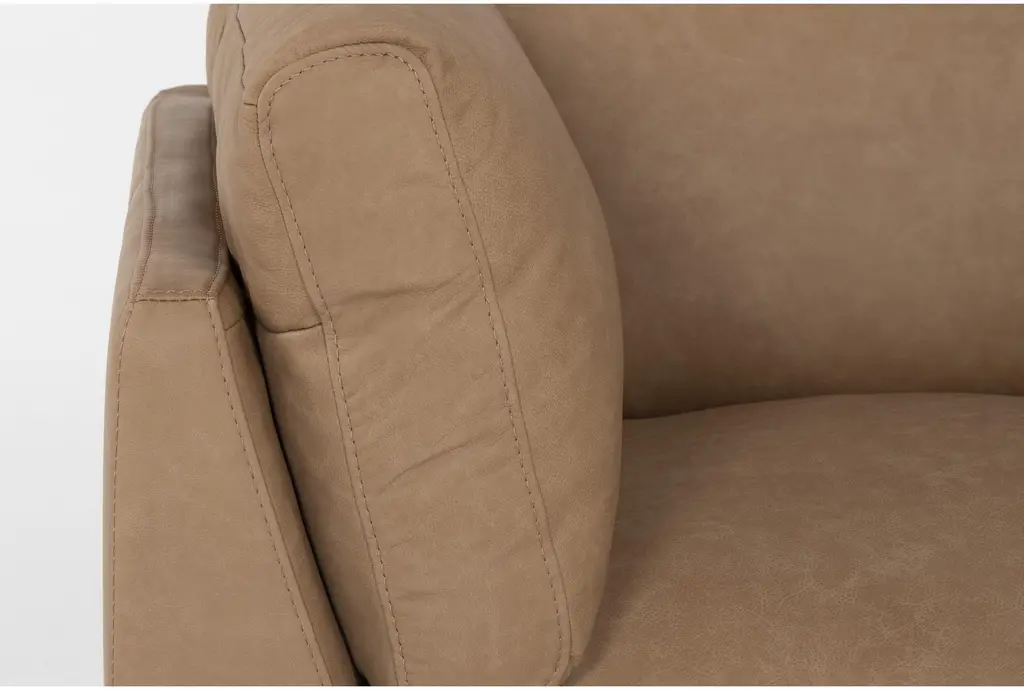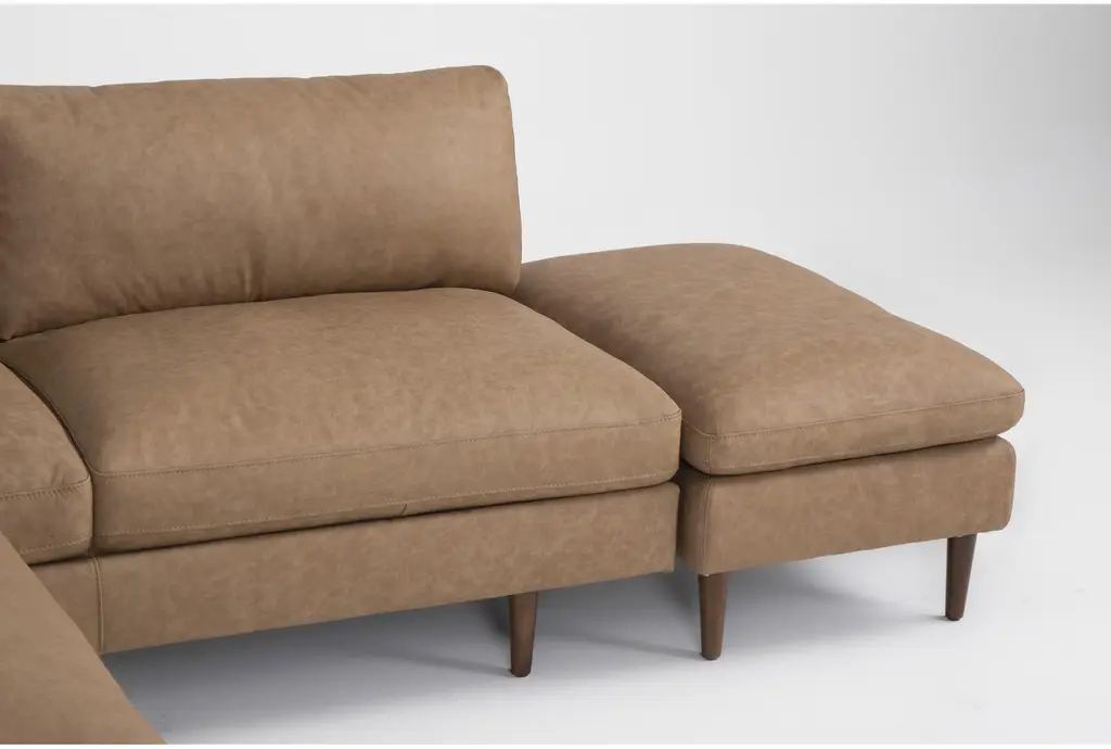 The Ewan Caramel Leather 3 Piece Sectional with Right Arm Facing Bumper Chaise brings comfort and style to your living room. This modern sectional is upholstered in Maestro Caramel leather, providing a warm and inviting atmosphere. Perfect for family gatherings or relaxing evenings, this sectional combines functionality and luxury.