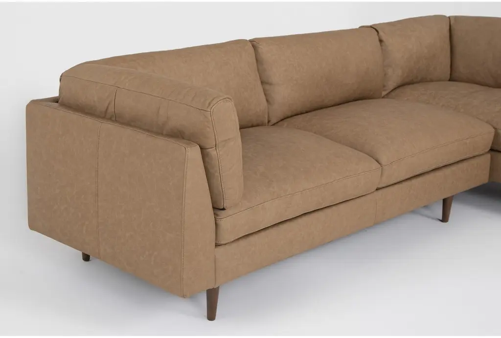 Ewan Caramel Leather 3 Piece Sectional With Right Arm Facing Bumper Chaise