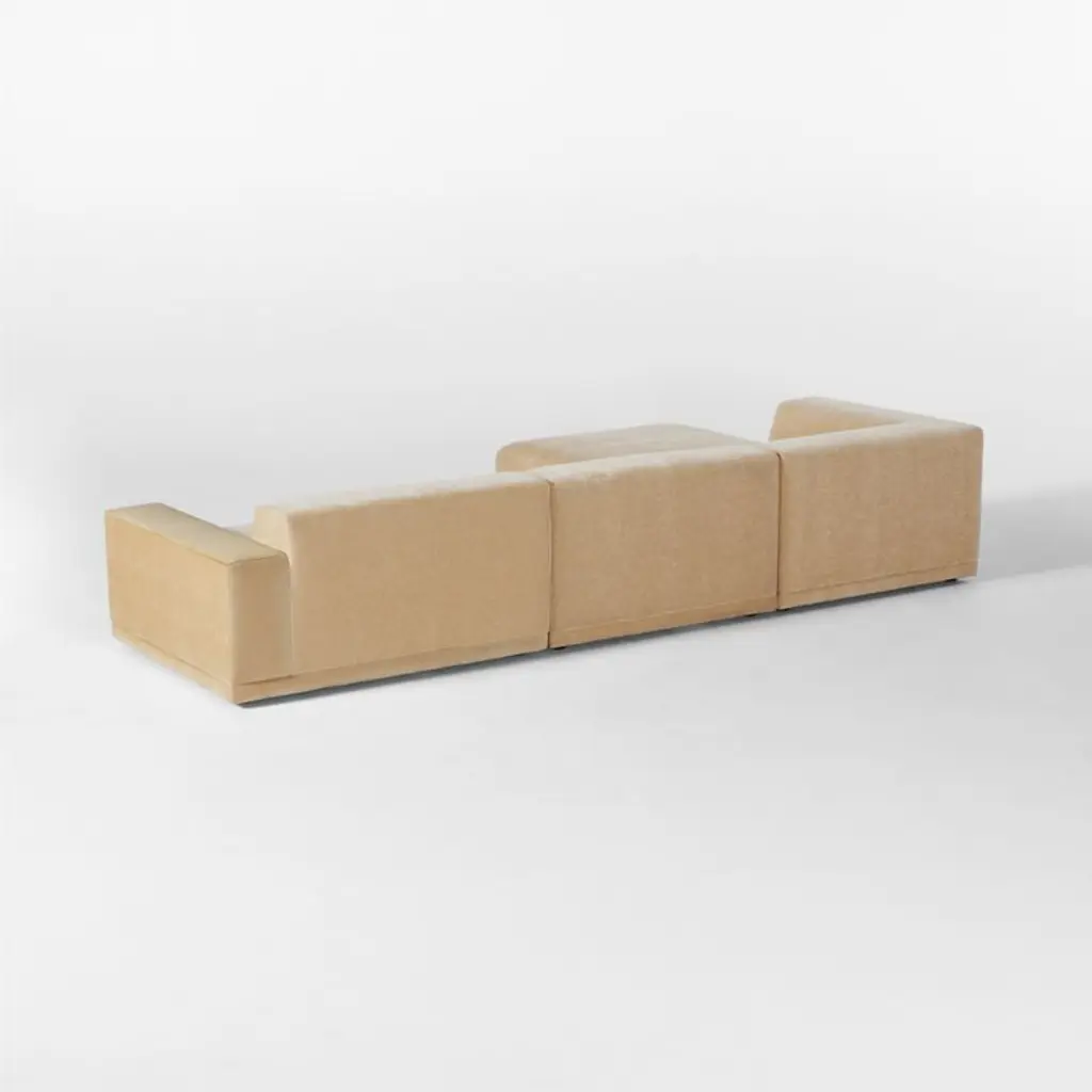 Deep, generously proportioned sectional sofa designed by VUUE is sophisticated in a wheat performance velvet. The oversized profile is perfect for lounging with family and friends without sacrificing style. Performance fabric withstands spills and other stressors, yet retains the lushness of a high-end textile. Customize the sectional layout to suit your individual space. CB2 exclusive.
