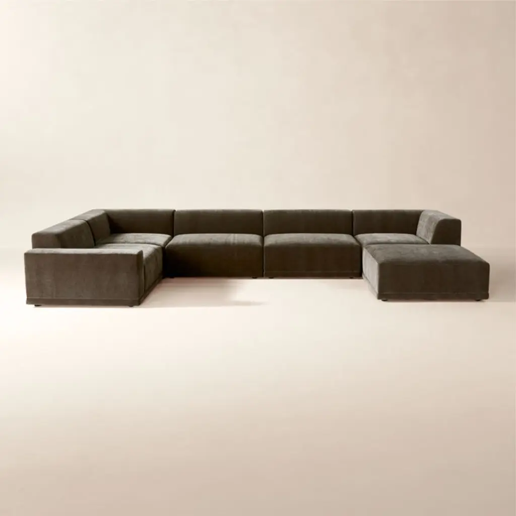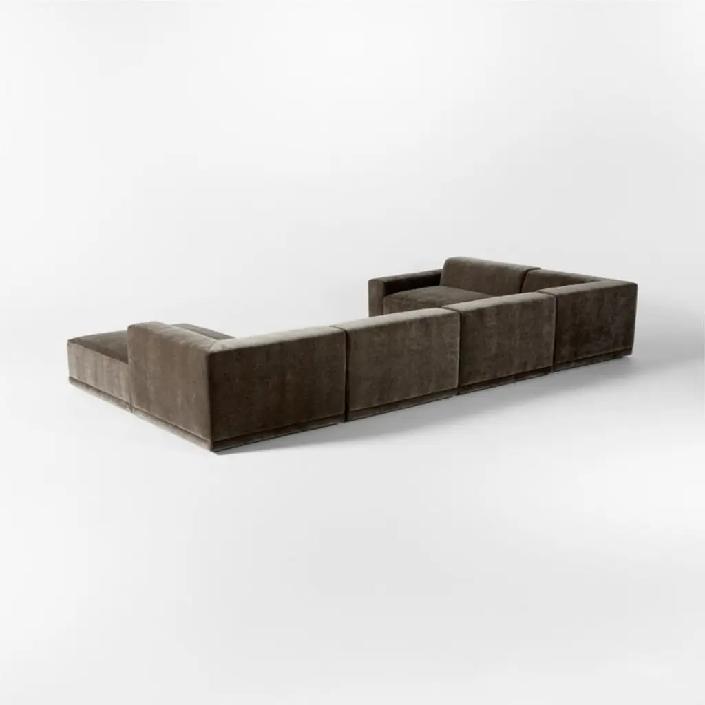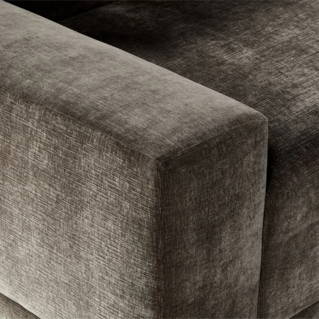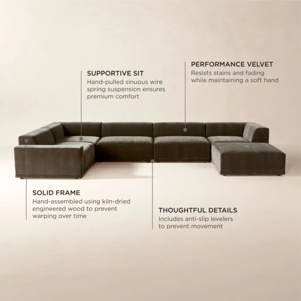 Deep, generously proportioned sectional sofa designed by VUUEis sophisticated in a warm grey performance velvet. The oversized profile is perfect for lounging with family and friends without sacrificing style. Performance fabric withstands spills and other stressors, yet retains the lushness of a high-end textile. Customize the sectional layout to suit your individual space. CB2 exclusive.
