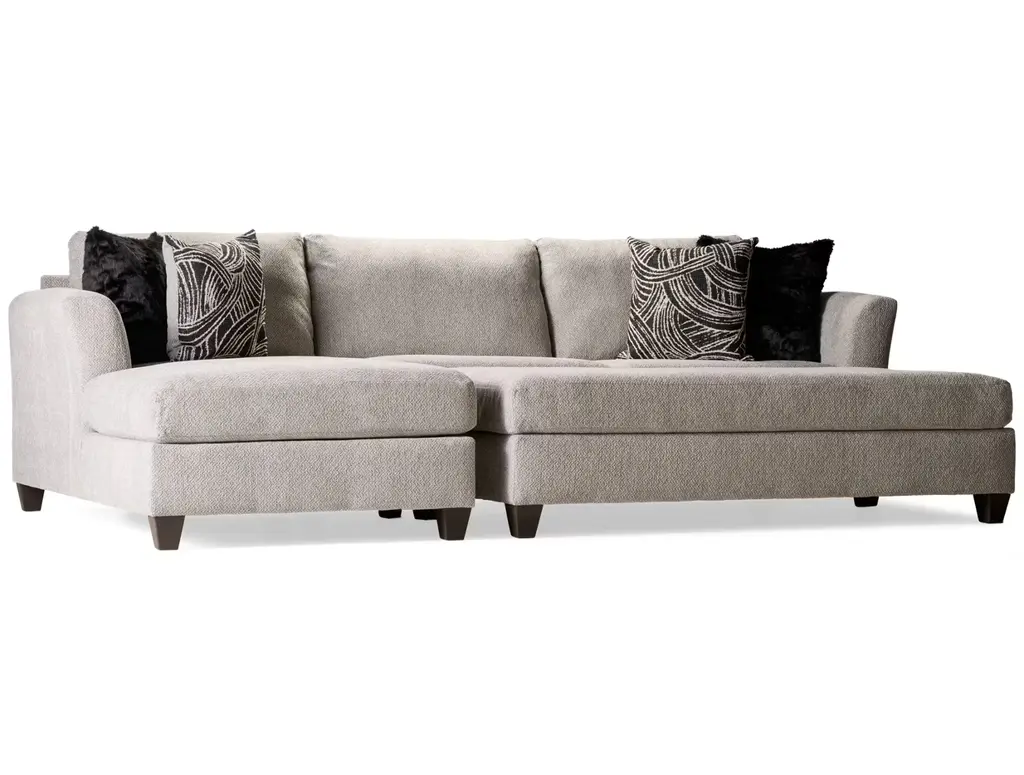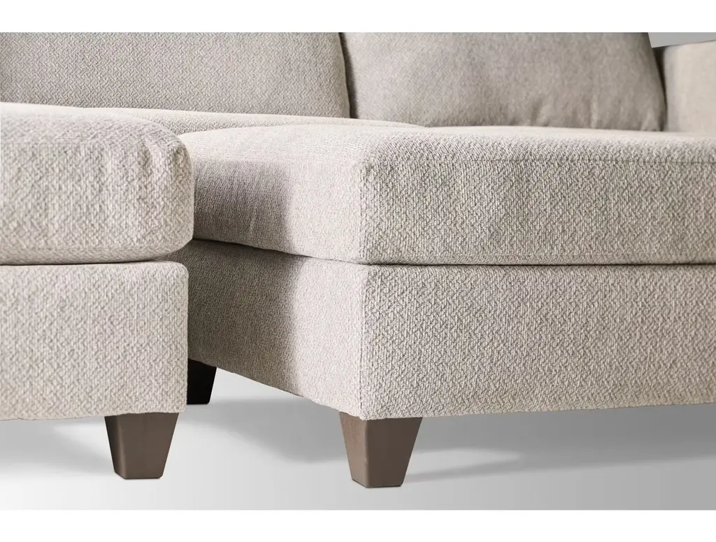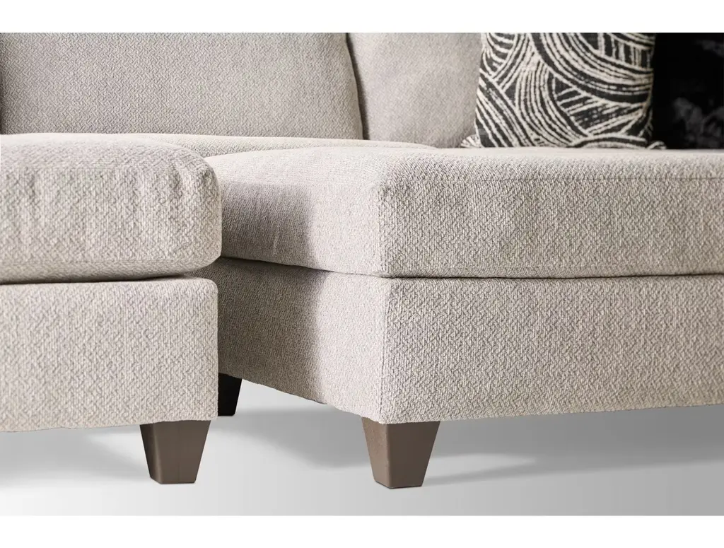 Streamlined, modern, and cozy, the Peak Living Fairbanks 3 Piece Sectional will elevate your living space. This plush pillow-back sectional features a chaise lounge, flared arms, tapered square legs, and four coordinating toss pillows for added comfort and style.
