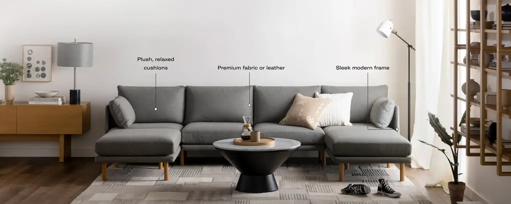 Experience the epitome of adaptable luxury with the Field Fabric 5-Piece Sectional Sofa, a symmetrical corner configuration from our versatile Field Collection. Designed to accommodate diverse styles, this modular couch is a perfect amalgamation of form, function, and future-proofed design. It champions the hallmarks of the collection, including deeper seats, plush cushions, and premium polyester fabric, and stands ready to grow and adapt with your living space over time. Explore the full story behind this extraordinary piece and its comprehensive collection. | Burrow Field 5-Piece Sectional Sofa