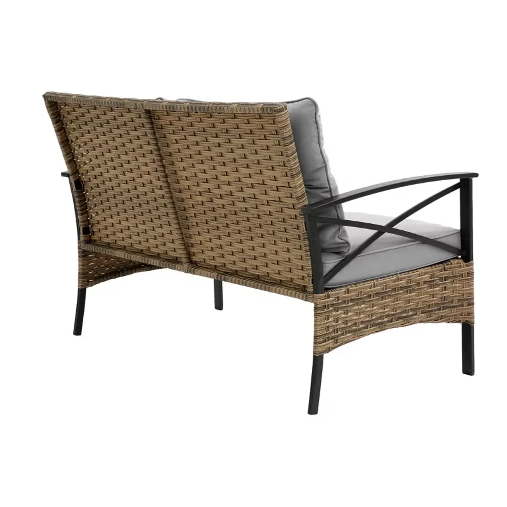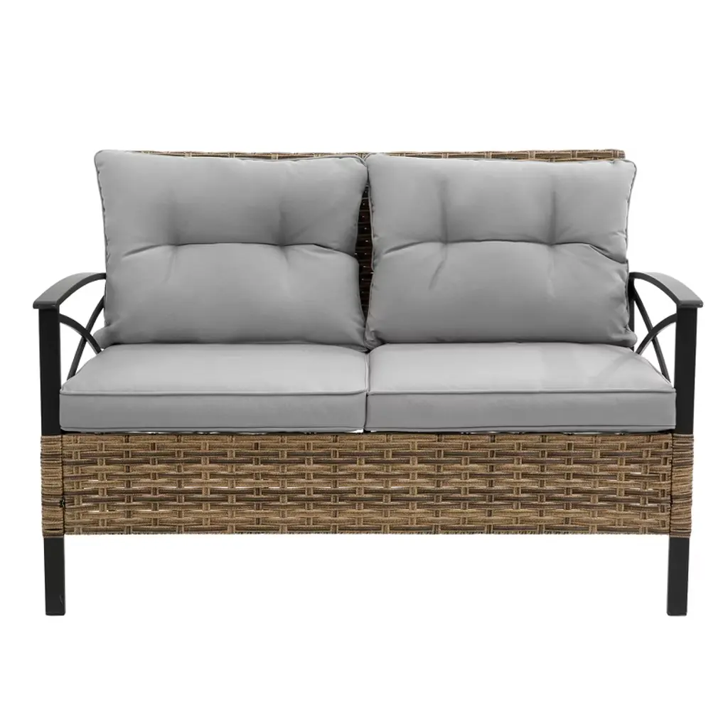 Fioneca 4-piece Patio Sectional Low Dining Sofa Set, Rattan Wicker Outdoor Corner Conversation Set With Cushions