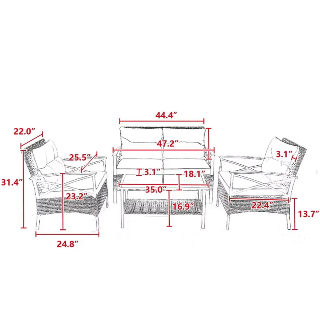 Create a cozy and stylish outdoor gathering spot with this 4-piece patio sectional low dining sofa set. Featuring a durable rattan wicker frame, this KD (knock-down) design is easy to assemble and perfect for patios, gardens, or balconies. The corner-style sectional offers generous seating, complemented by comfortable cushions for all-day relaxation. Its versatile layout adapts to your space, making it ideal for dining, lounging, or entertaining outdoors.
