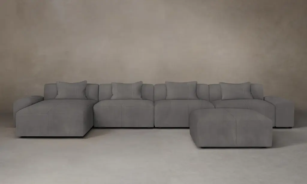 Configure the Form modular sectional into a collage of comfort as the collection includes slipper and corner chairs, as well as an ottoman. Contemporary in both style and function, Form features top-grain leather upholstery that will age into a beautiful patina, reverse stitching accents throughout, and emphasis placed on its plump, slightly rounded silhouette with feather and fiber-fill cushioning.