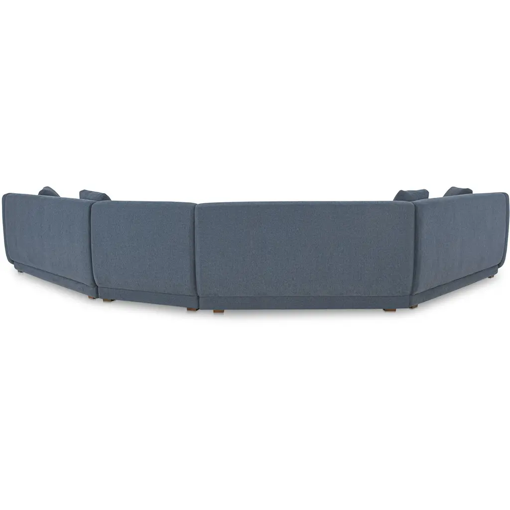 The Fraser sectionals contemporary modular design infuses the elegance of gentle slopes with linear precision, harmoniously merging soft curves and angular forms into its 60s and 70s-inspired aesthetic. Crafted on a minimalist plinth base and upholstered in sumptuous 100% polyester, foam and fiber seating invites serene repose.