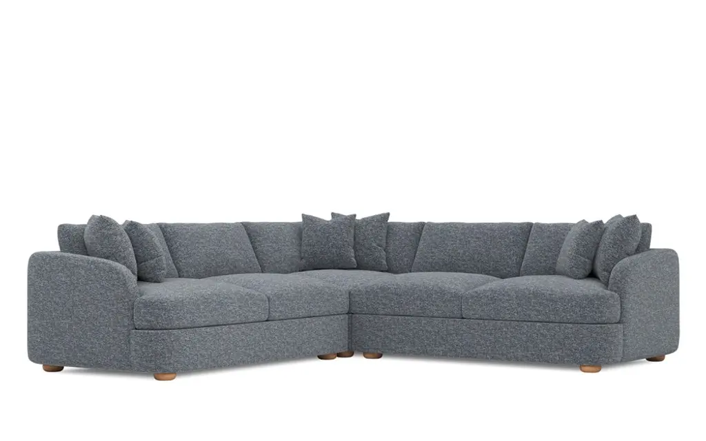 The Fraser sectionals contemporary modular design infuses the elegance of gentle slopes with linear precision, harmoniously merging soft curves and angular forms into its 60s and 70s-inspired aesthetic. Crafted on a minimalist plinth base and upholstered in sumptuous 100% polyester, foam and fiber seating invites serene repose.