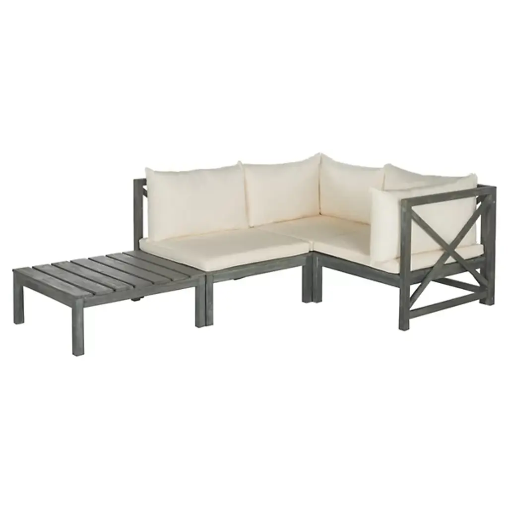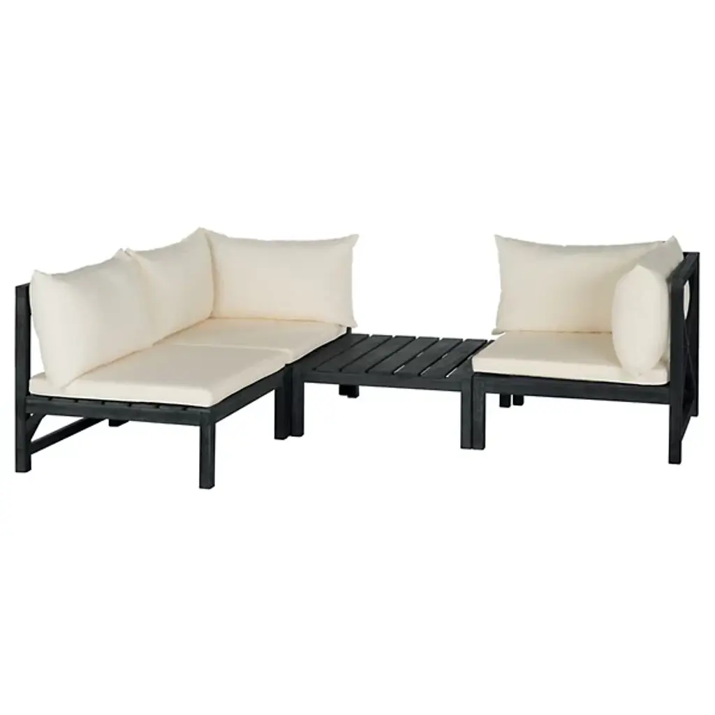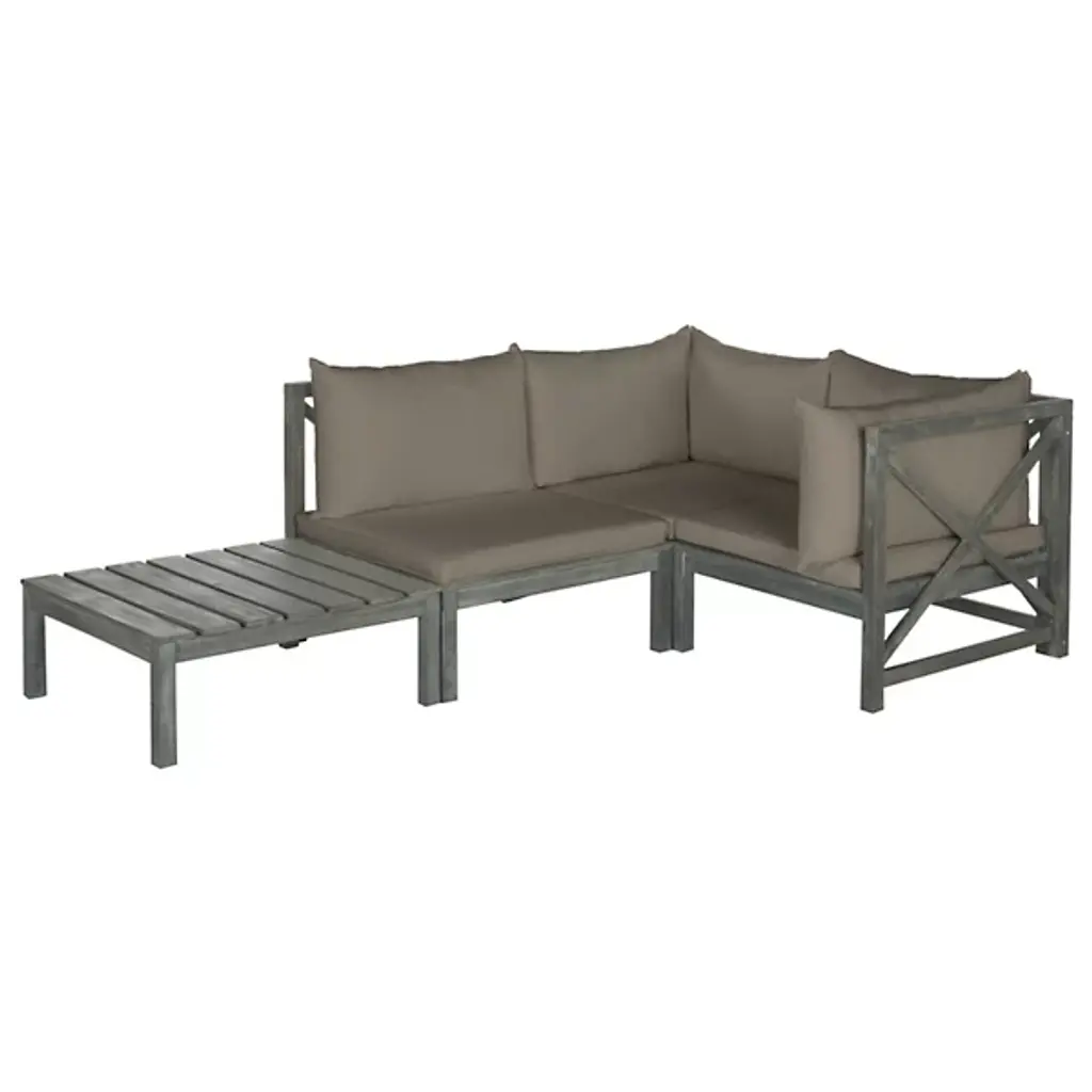The Funston Modular Outdoor Sectional from Alder & Ore adapts to your outdoor living needs with smart flexibility. Its modular design includes two corner pieces, an armless seat, and a multi-purpose coffee table that doubles as an end table. The acacia wood frame supports plush polyester cushions filled with high-grade foam, offering supreme comfort for outdoor relaxation. The galvanized steel accents add structural integrity while complementing the natural wood tones.
