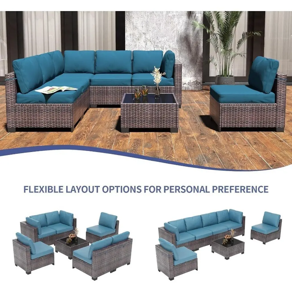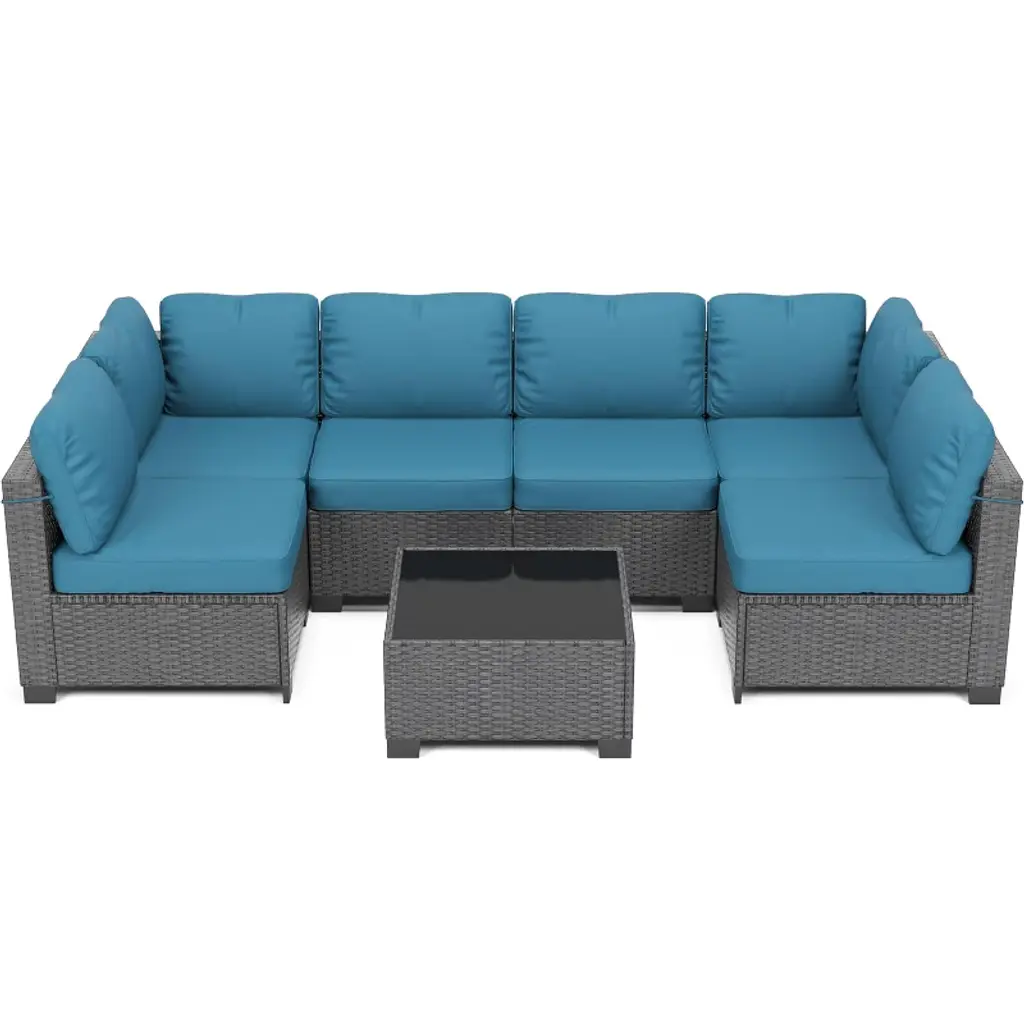 Garvee 7-piece Outdoor Sofa Set, Wicker Sectional Patio Furniture With Cushions, Rattan Modular Couch For Balcony, Garden, Or Terrace