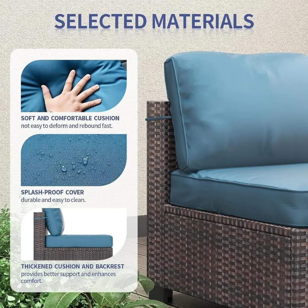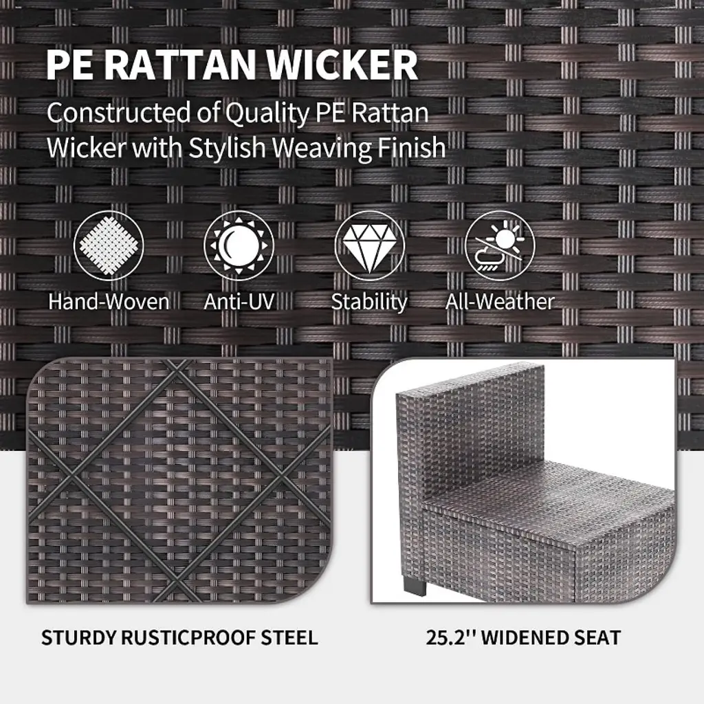 Upgrade your outdoor living space with this versatile and durable 7-Piece Wicker Patio Furniture Set. Constructed with a rust-resistant powder-coated steel frame and wrapped in tightly woven all-weather PE wicker, the set delivers both strength and style. The textured arcuate stripe weave adds depth and elegance, while the thick cushions offer unmatched comfort. Featuring removable, waterproof covers and anti-slip cushion bases, maintenance is a breeze. Each modular piece can be used individually or rearranged to suit your layout¡ªideal for patios, gardens, decks, or poolside relaxation.