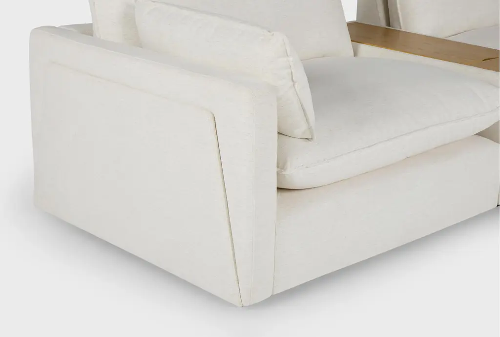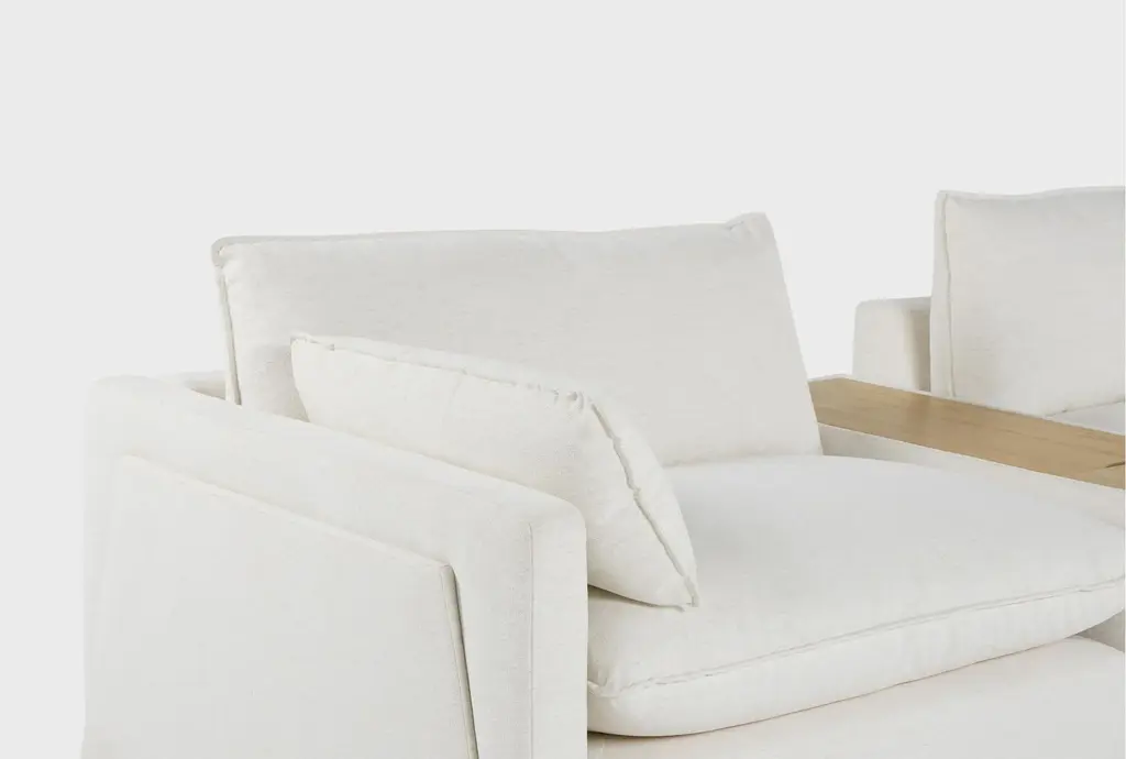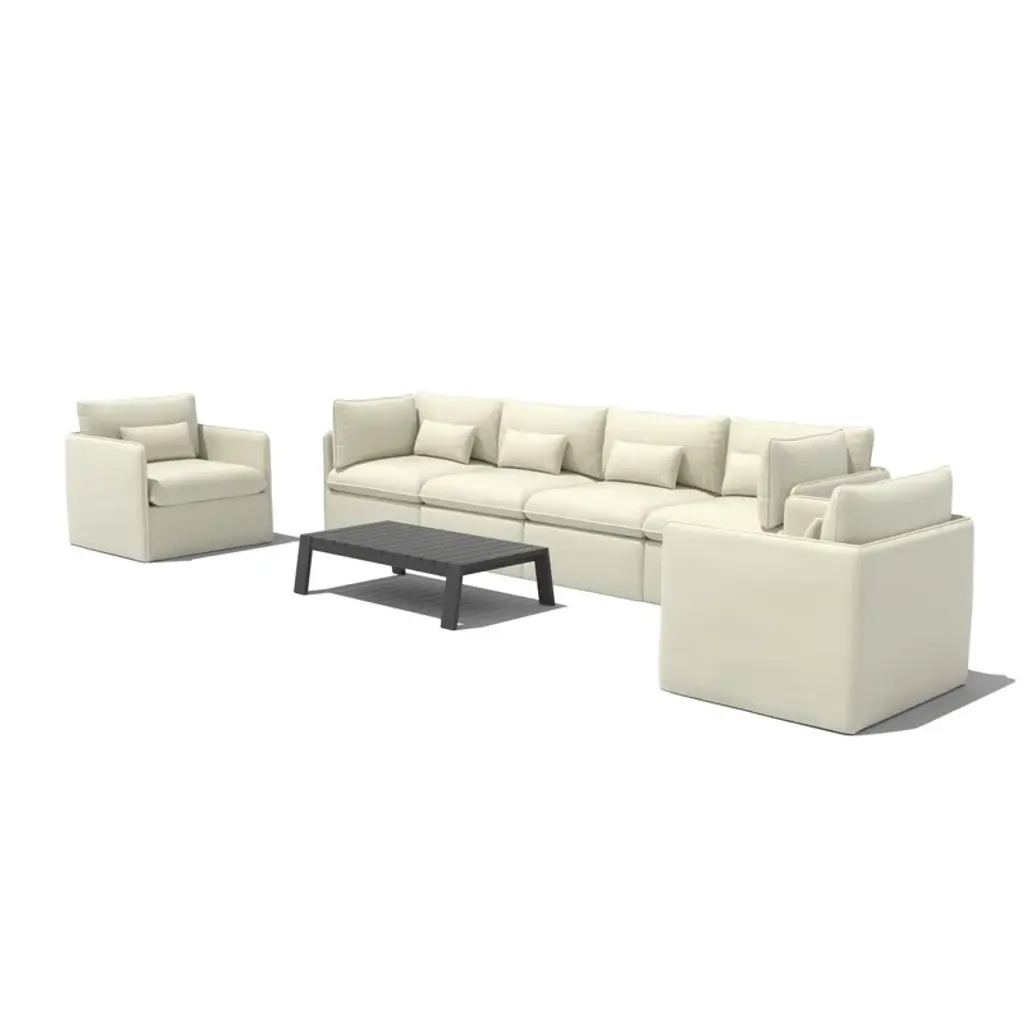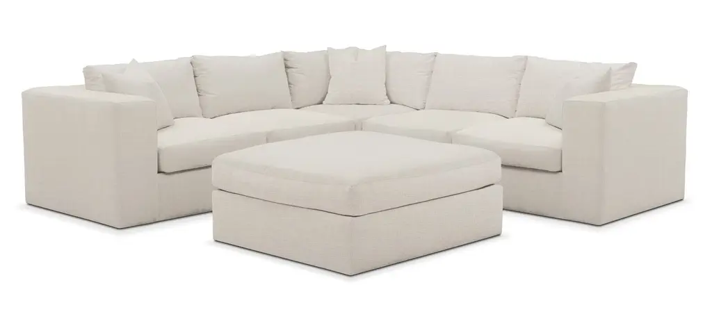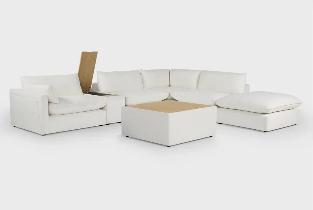 Experience ultimate comfort and versatility with the Getaway White 6 Piece Modular Sectional with Console Right Arm Facing Bumper Ottoman & Table Cocktail Ottoman. Designed with Crypton Performance fabric, this sectional is perfect for high-traffic living rooms. The stain-resistant upholstery ensures easy maintenance and long-lasting durability.