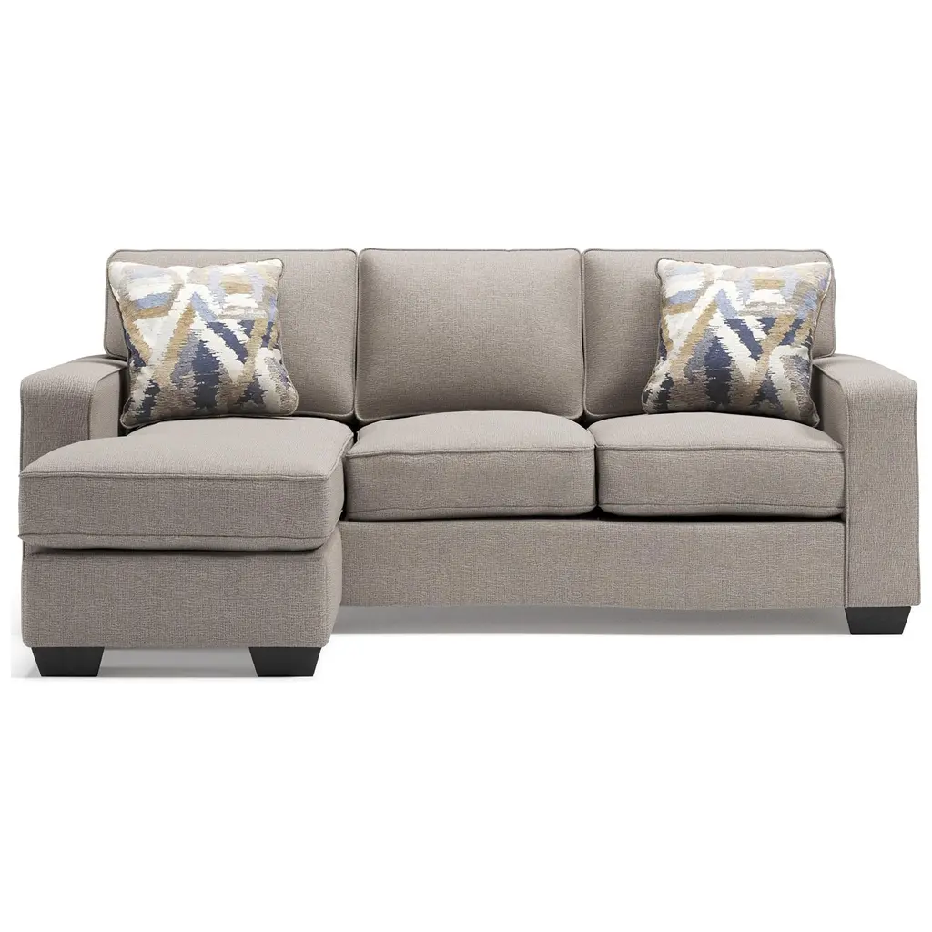 The easy boxy style and classic silhouette of the Grady sectional takes an updated turn with up-to-the-minute style options and organic graphic accent pillows. Customize your comfort configurations with a wedge back chaise or choose a cuddler for an original touch. Featuring the touchable texture of chenille with crisp piping and pleasing rolled arms, this refreshing sectional collection has just what you're looking for.