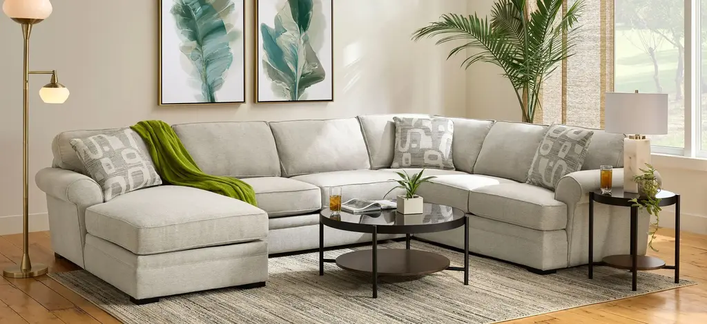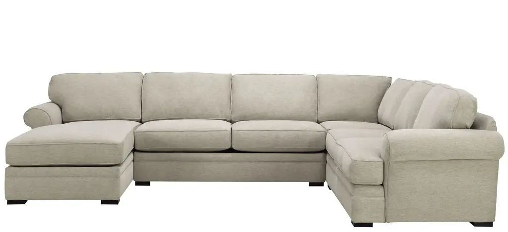 The easy boxy style and classic silhouette of the Grady sectional takes an updated turn with up-to-the-minute style options and organic graphic accent pillows. Customize your comfort configurations with a wedge back chaise or choose a cuddler for an original touch. Featuring the touchable texture of chenille with crisp piping and pleasing rolled arms, this refreshing sectional collection has just what you're looking for.