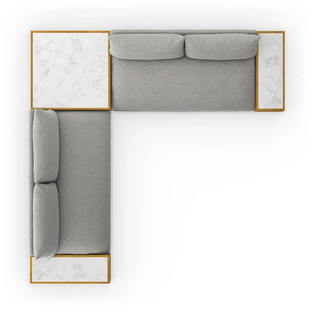 A modern essential for outdoor with a casual look to channel relaxed California lounging. Slipcovers with a knife-edge detail offer a simplified look that prioritizes comfort and practicality. The corner coffee table and end tables made of FSC-certified teak offer entertainment ease. Covered in 100% olefin, known for its UV-resistant, water-repellent and quick-drying abilities. Cover or store indoors during inclement weather and when not in use. Ships In 10-14 Business Days Ships In 10-14 Business Days White marble table tops All-weather cushions Natural teak construction This image is for illustrative purposes only. The colors shown are accurate within the constraints of lighting, photography, and the color accuracy of your screen.