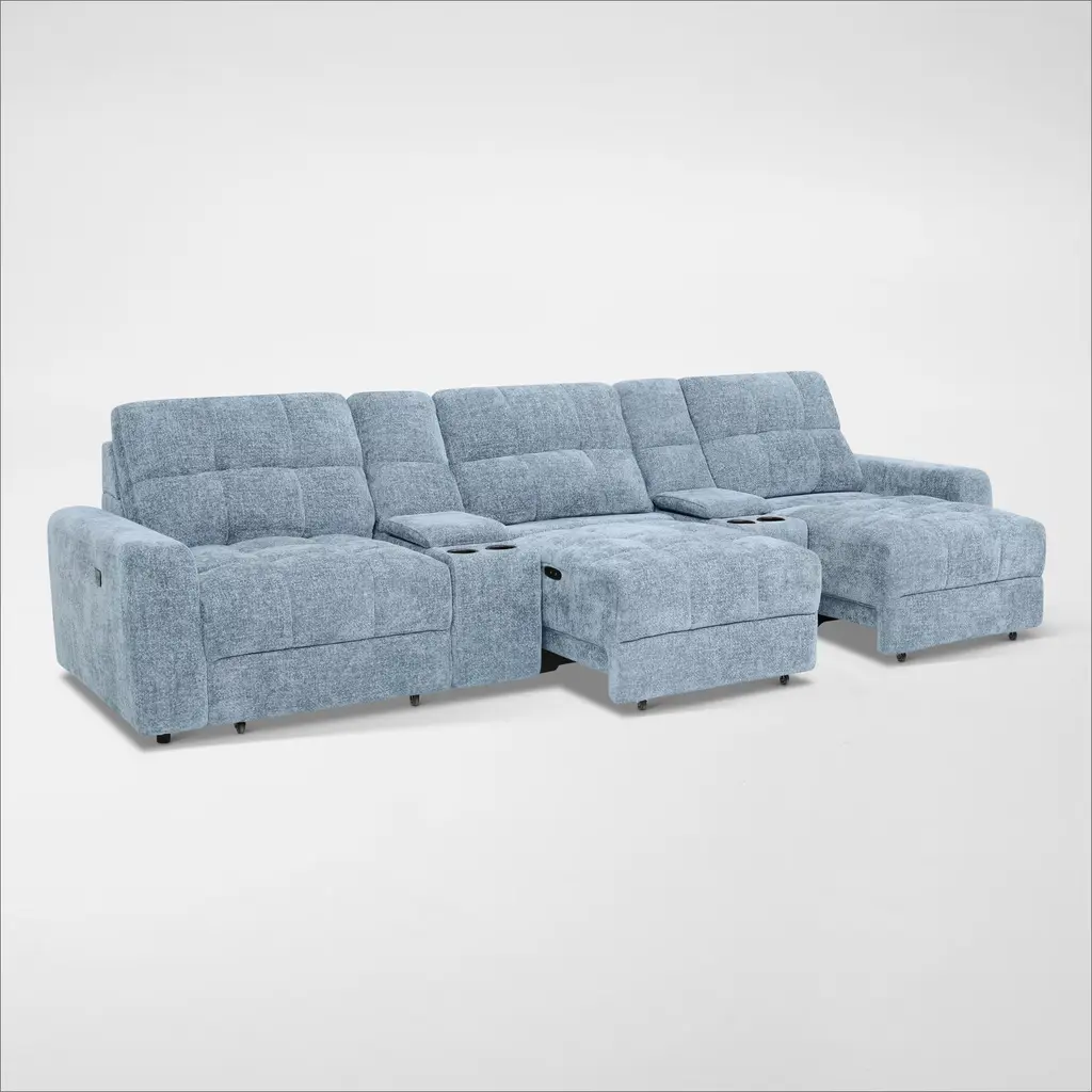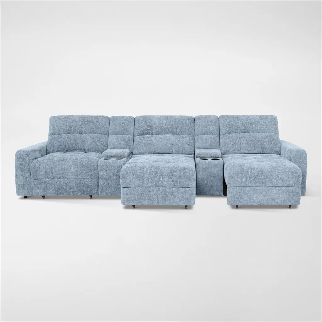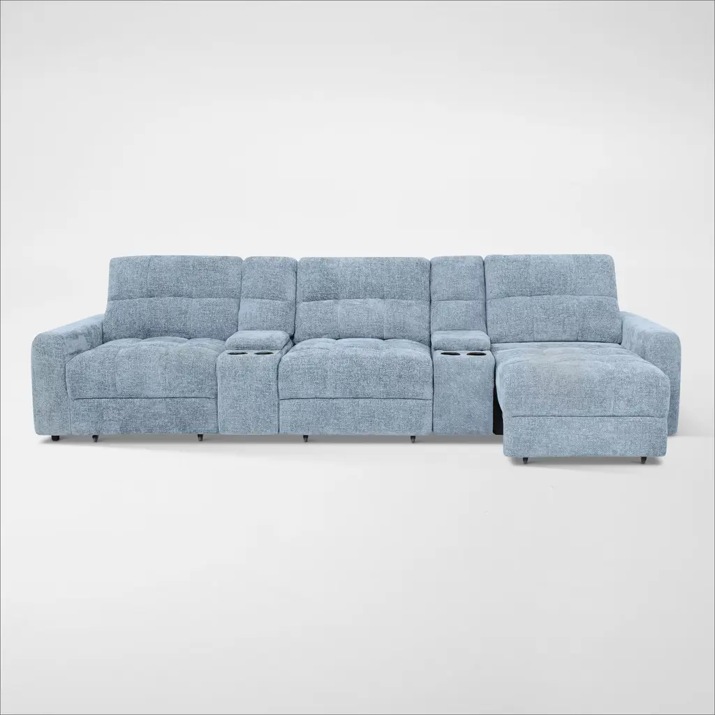 Grayson 5-Piece Power Extendable Sectional With Console - Sky