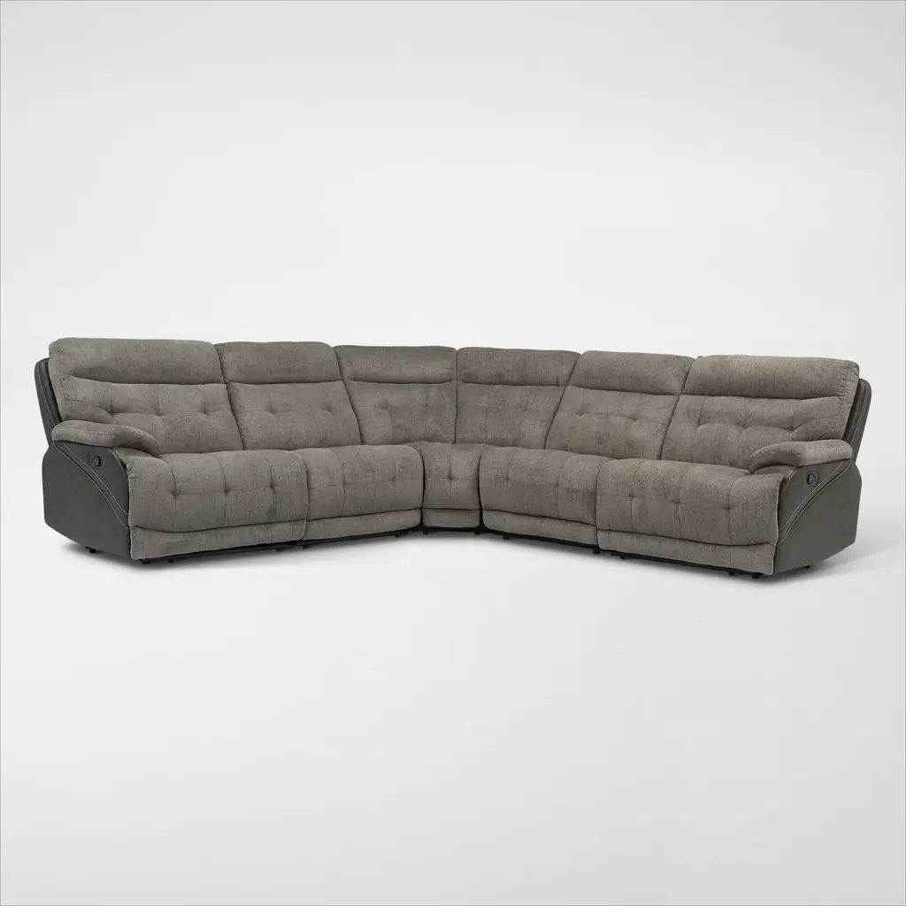 Affordable and inviting, the Grayson sectional is found at the intersection of feel and function. Plush, deep seating is combined with detailed design, and the ease of one-touch power. This stylish sectional offers extra wide seating, chaise footrests, power recline, and power adjustable headrests in 3 seats for full body comfort! Upholstered in luxurious, yet durable 100% polyester fabric, it adds an element of sophistication to any room. Whether you desire a gentle recline for a cozy night in or prefer to just elevate your legs after a long day, this sectional adjusts effortlessly to your preferences. With multiple reclining and headrest positions available, finding the perfect angle for lounging, reading, or watching TV has never been easier. - Product Details provided by Manufacturer, Slumberland not responsible for errors in information.