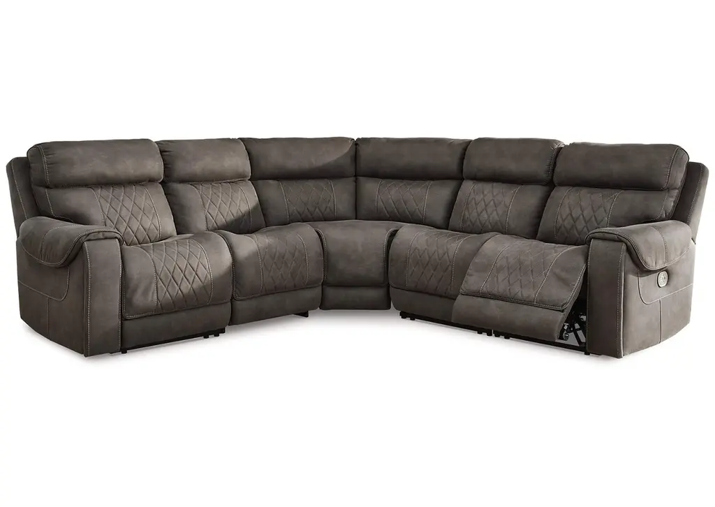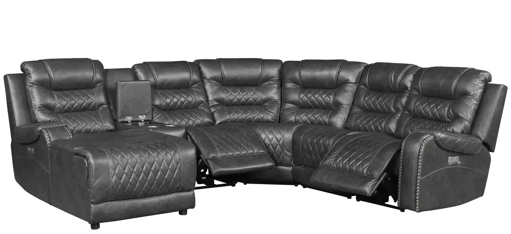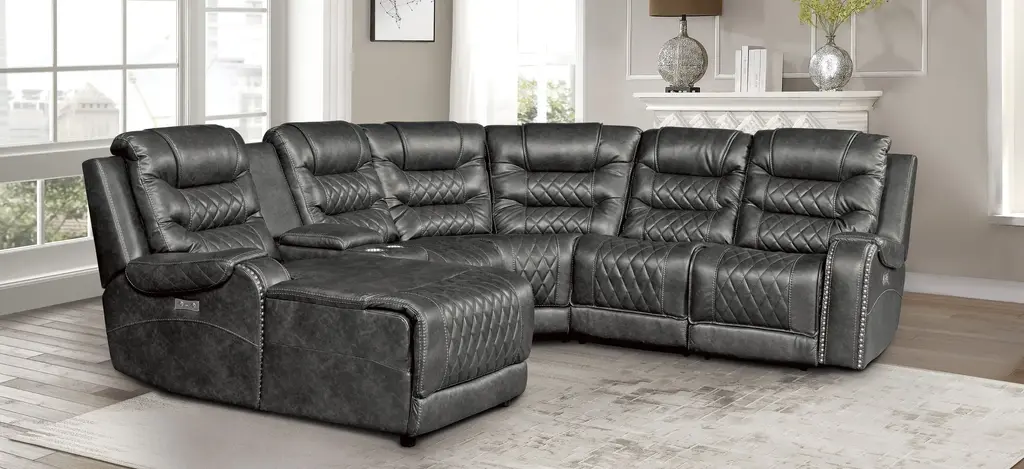 The Greenway Collection will serve as a functional, stylish, and comfortable seating group for your living room. Sectional is available in power version only. Gray polished microfiber upholstery with diamond pattern stitching and nailhead-adorned arms creates the classic look of the Greenway Collection.