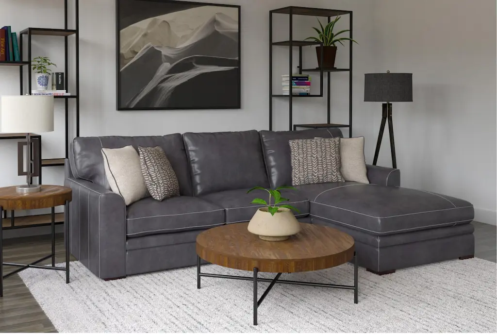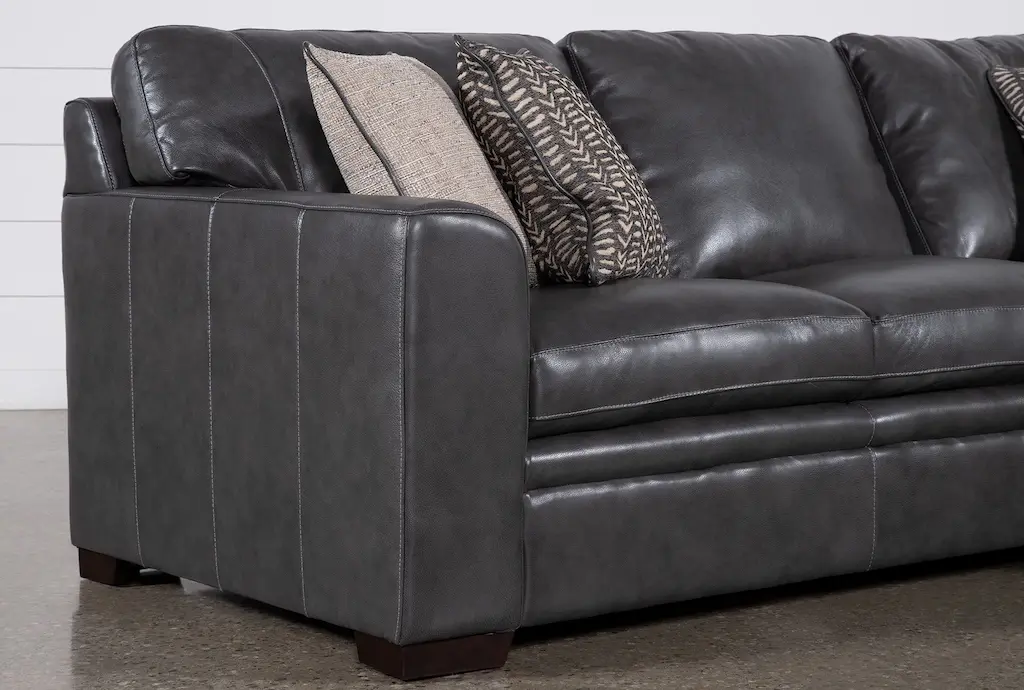 Greer Dark Grey Black Leather 2 Piece 105" Modular Sectional With Right Arm Facing Chaise & Left Arm Facing Loveseat | Deep Seated