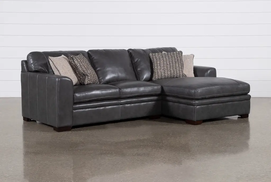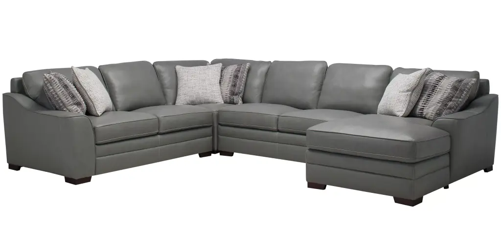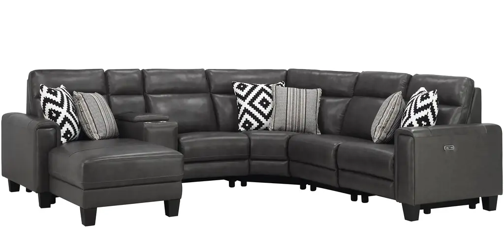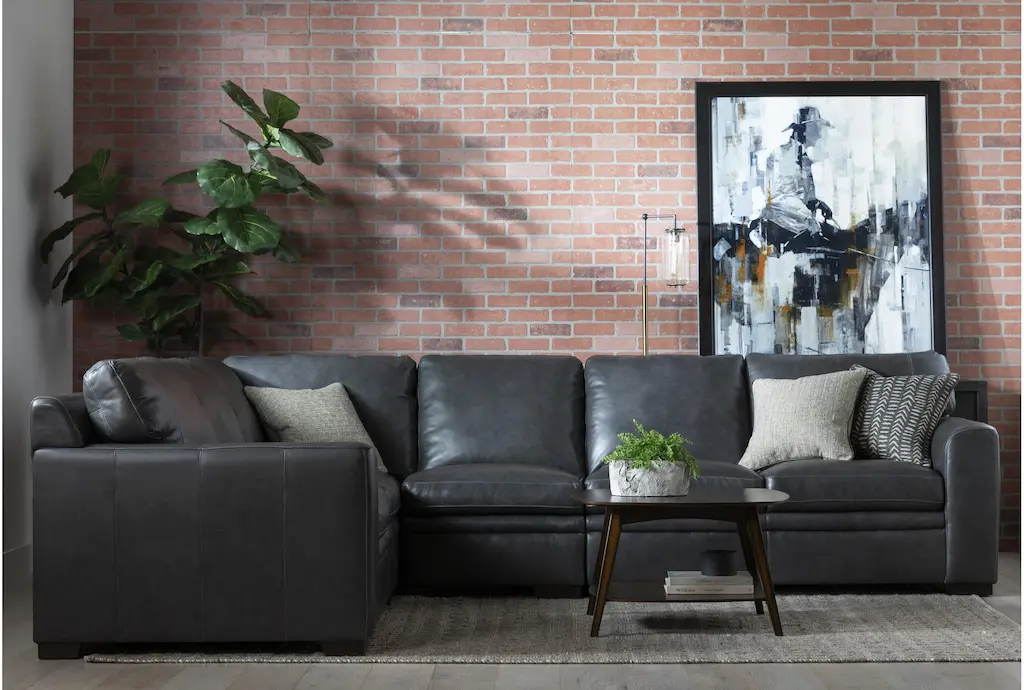 Experience unparalleled comfort and style with the Greer Dark Grey Leather 4 Piece 133" Modular L-Shaped Sectional. Perfect for any living room, this sectional provides deep seating and a soft comfort level, making it ideal for lounging and entertaining. The dark grey leather upholstery adds a touch of sophistication to your space, while the modular design allows for customizable configurations to fit your needs.