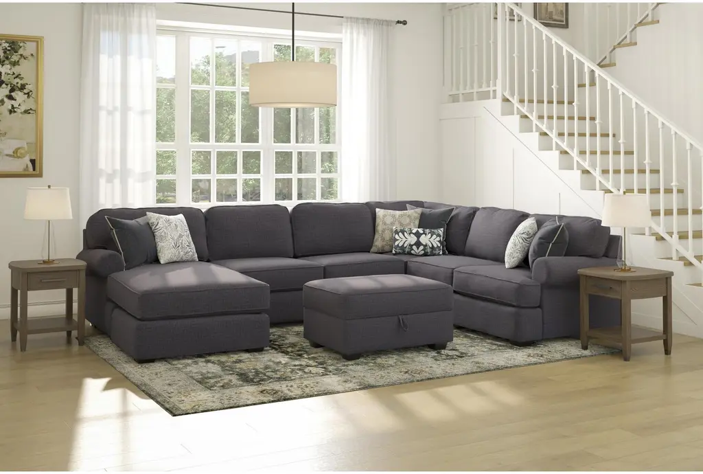 The Hampstead II Blue 140" 2 Piece Sectional with Left Arm Facing Sofa Chaise & Ottoman is a perfect addition to any living room. This casual sectional provides ample seating and features a left arm facing orientation. Enjoy the comfort and durability of its 100% polyester fabric, making it ideal for everyday use.
