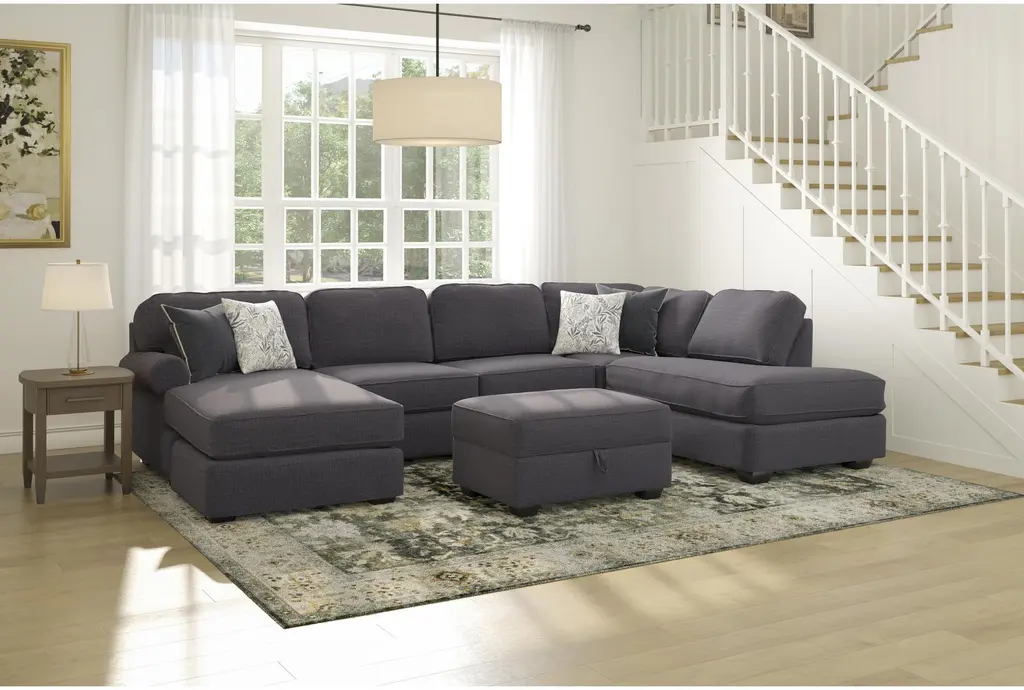 Hampstead Ii Blue 140" 2 Piece Sectional With Left Arm Facing Sofa Chaise + Right Arm Facing Corner Chaise & Ottoman