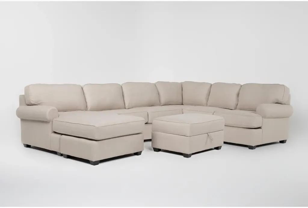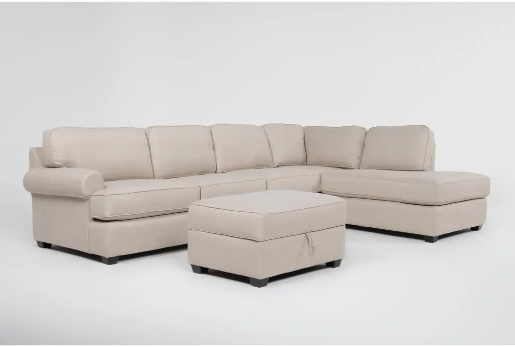 Hampstead Ii Linen 140" 2 Piece Sectional With Right Arm Facing Sofa & Ottoman | Loose Reversible Back