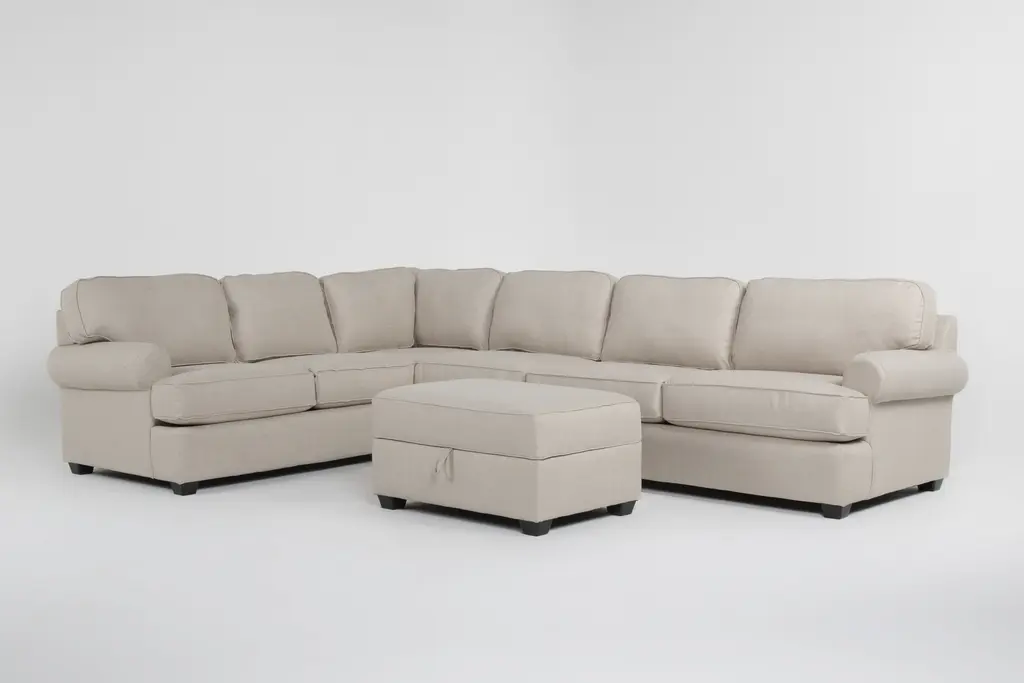 Clean, inviting style meets spacious, irresistible comfort on our Hampstead sectional and ottoman, which are designed and made exclusively by Living Spaces. With plenty of room to gather friends and family, plus durable, neutral upholstery, they're perfect for easy living and carefree lounging. Multiple configuration and color options also allow you to find the right fit for your space, while thoughtful construction elements ensure exceptional quality and longevity.