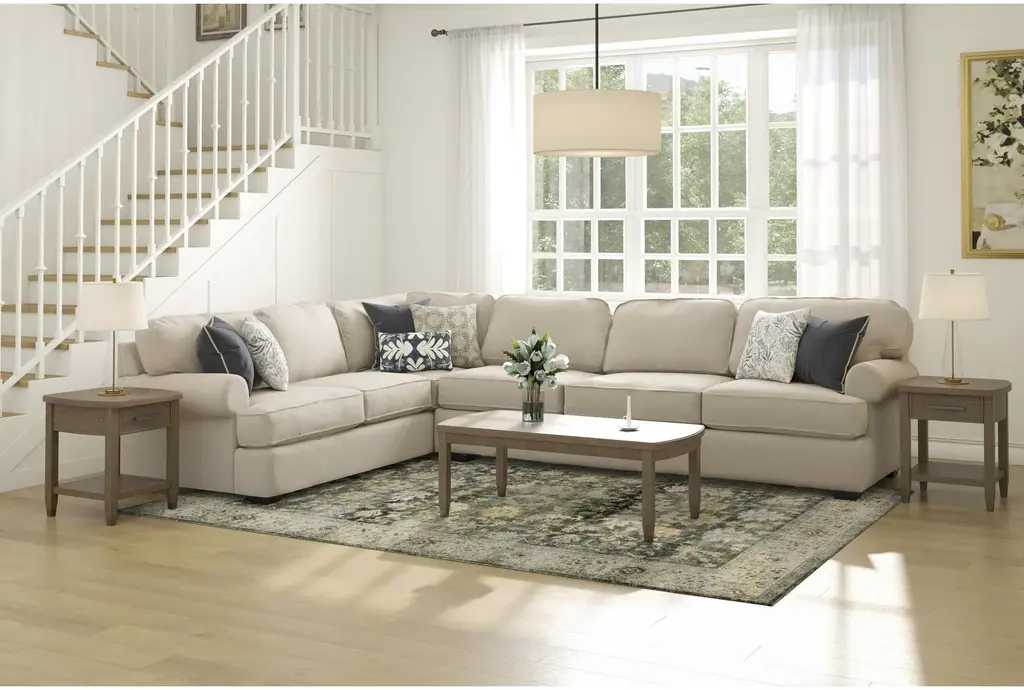 The Hampstead II Linen 140" 2 Piece Sectional with Right Arm Facing Sofa is the perfect addition to your living room. Its casual style and neutral linen color make it a versatile choice for various decor themes. Made from 100% polyester fabric, this sectional offers both comfort and durability.