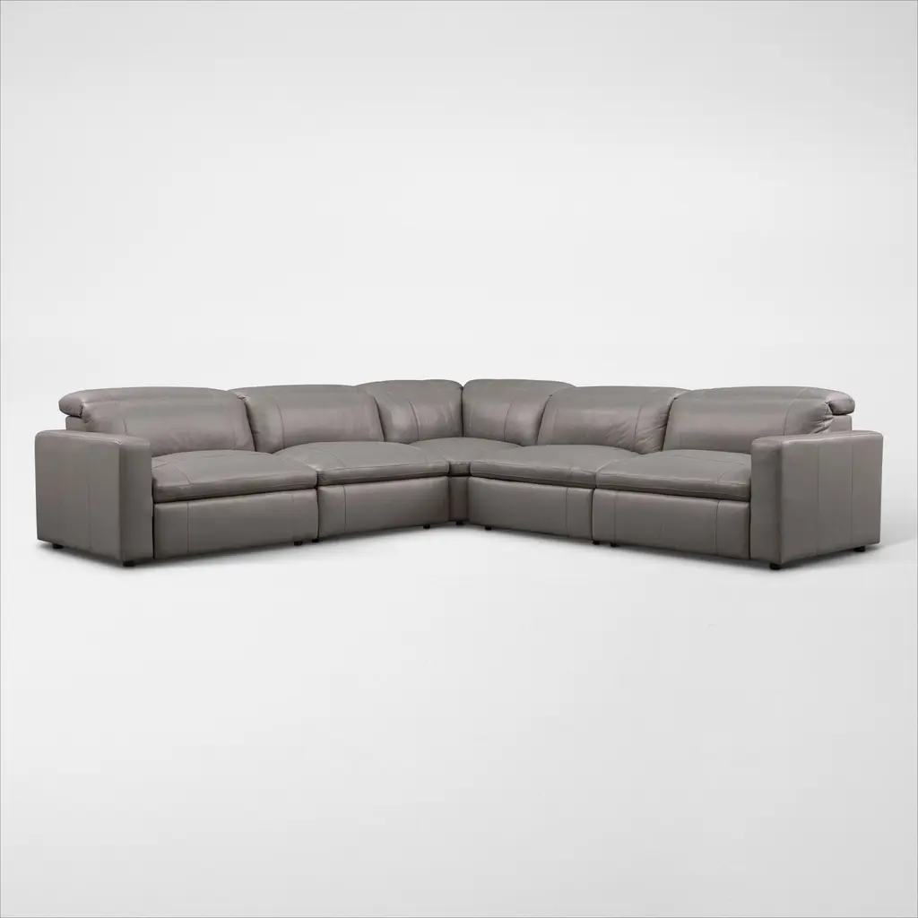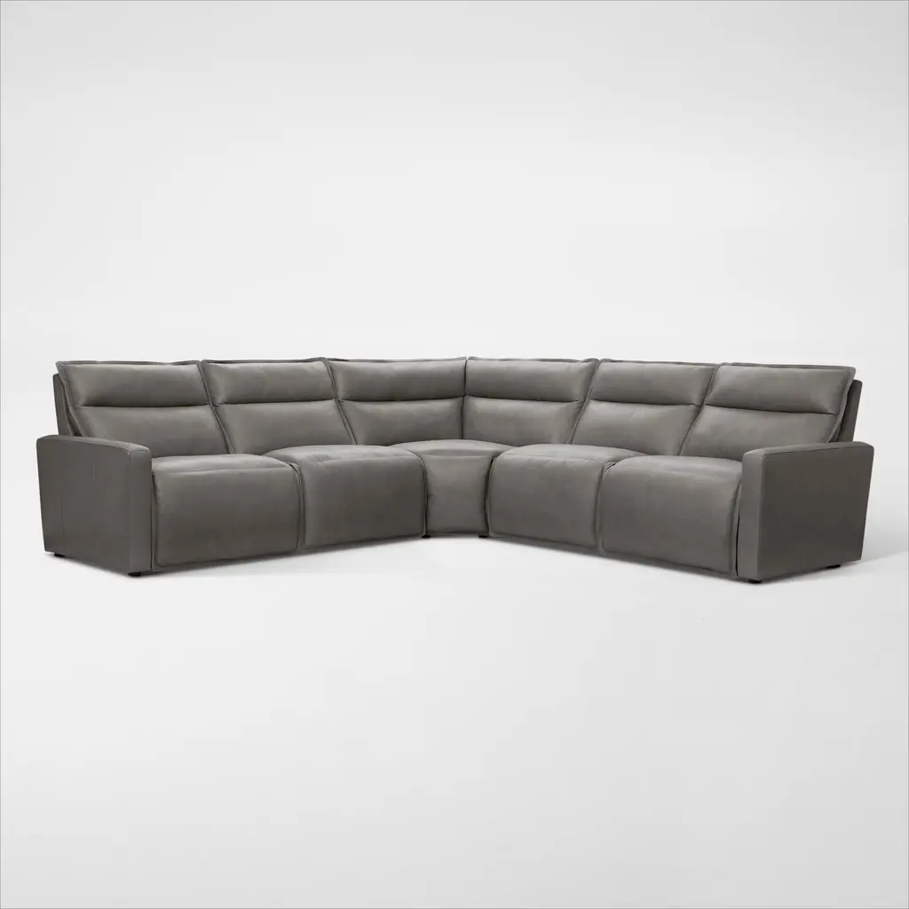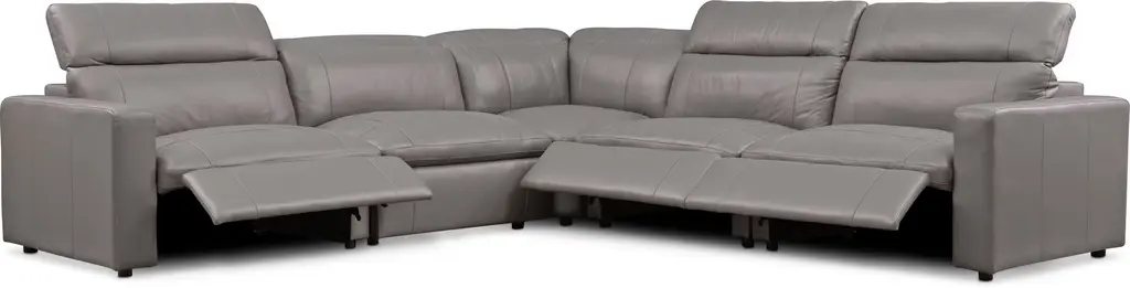 Happy 5-Piece Dual-Power Reclining Sectional With 3 Reclining Seats - Gray