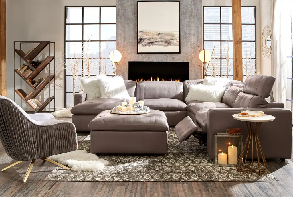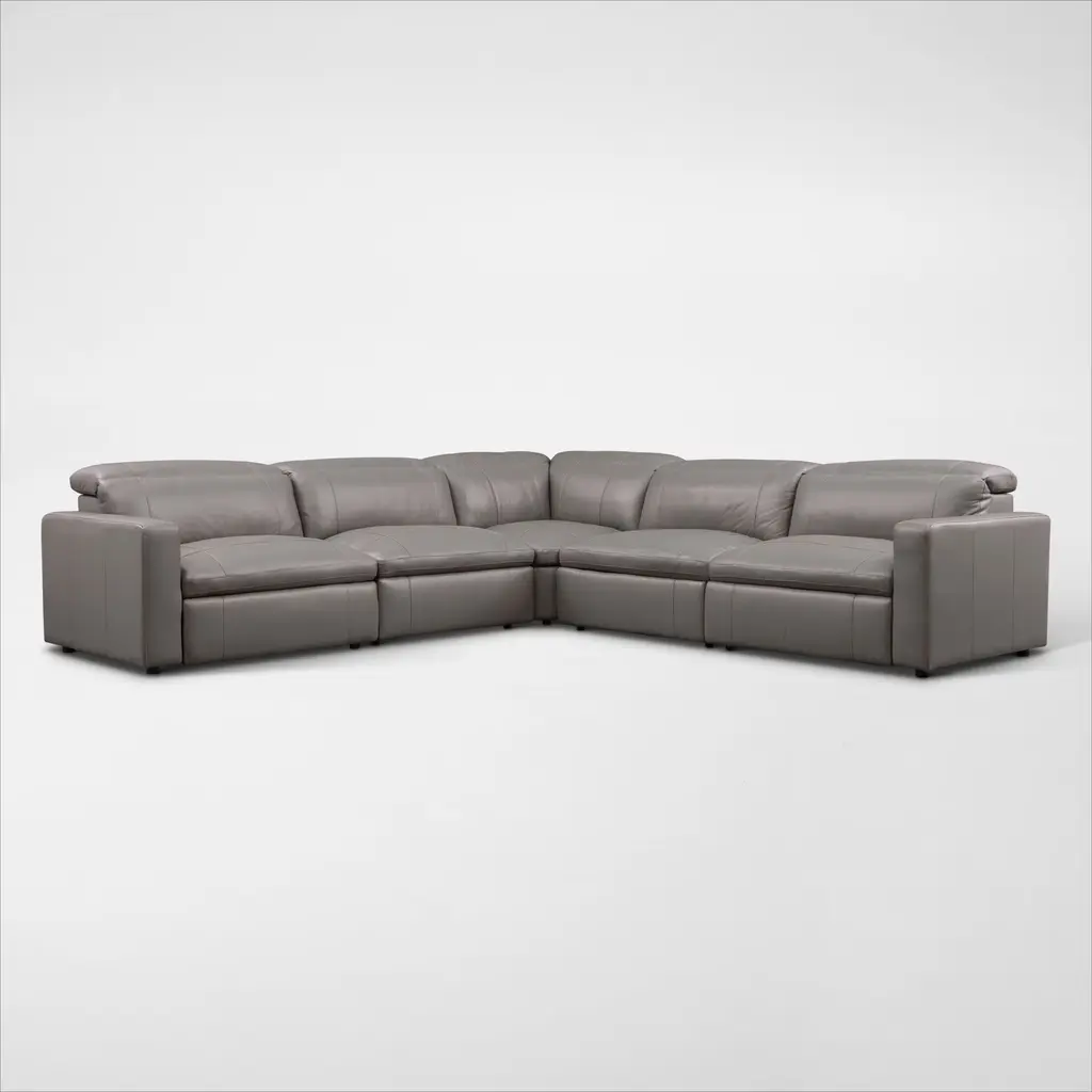 Happy 5-Piece Dual-Power Reclining Sectional With Left-Facing Chaise And 2 Reclining Seats - Gray