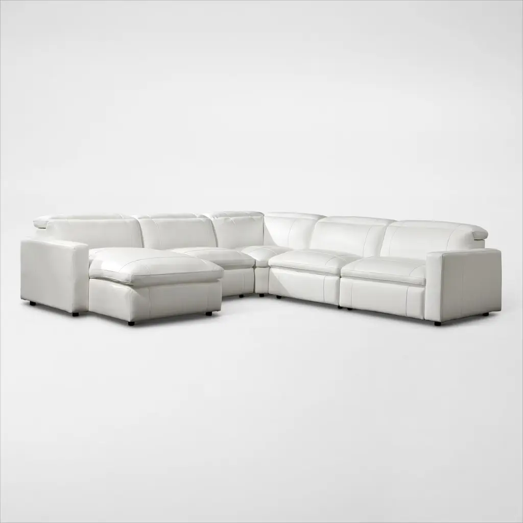 Happy 5-Piece Dual-Power Reclining Sectional With Left-Facing Chaise And 2 Reclining Seats - White
