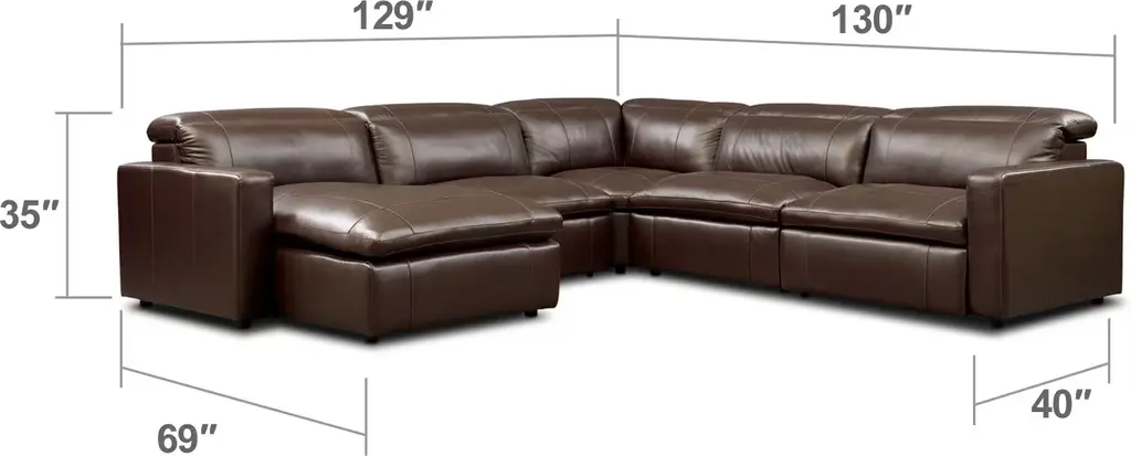 Enjoy ultimate relaxation with the Happy 5-Piece Dual-Power Reclining Sectional with Chaise and 2 Reclining Seats. The perfect spot to kick back, relax and spend some time with friends and family or just yourself.