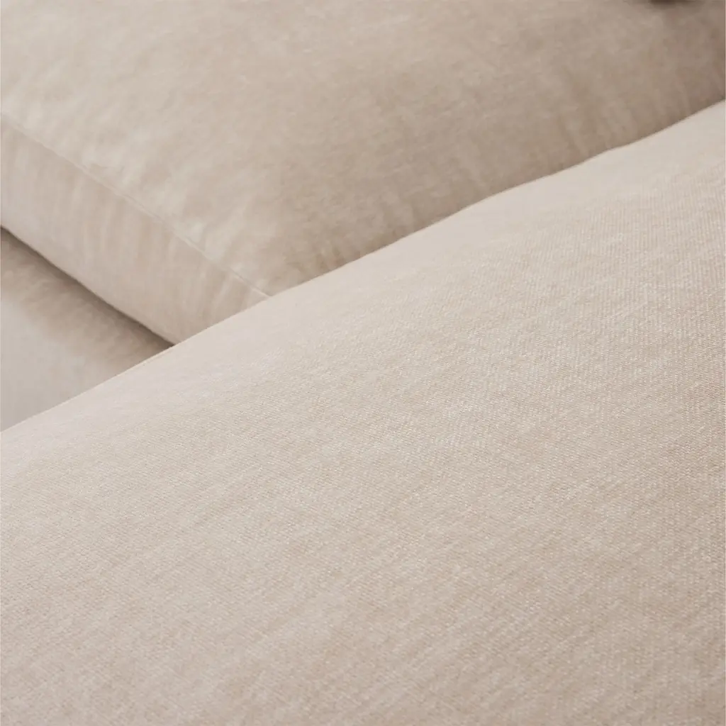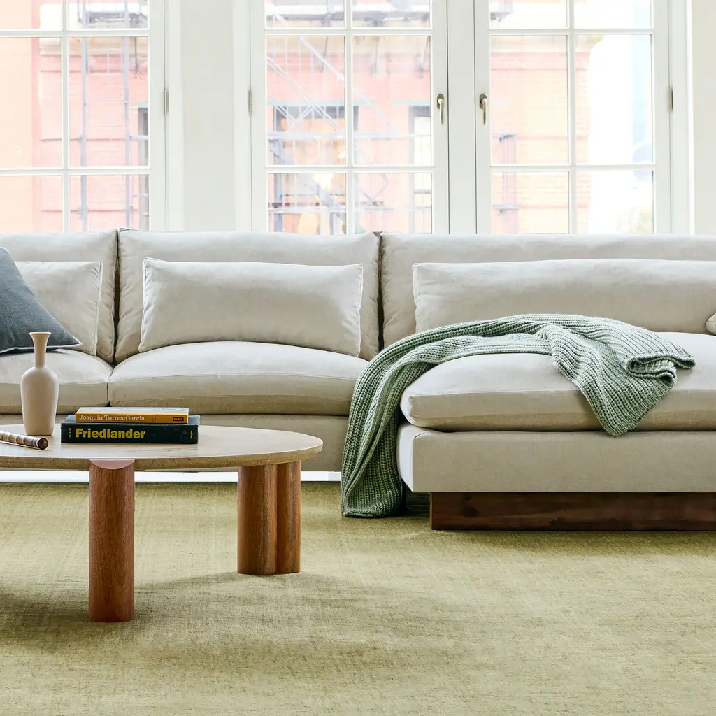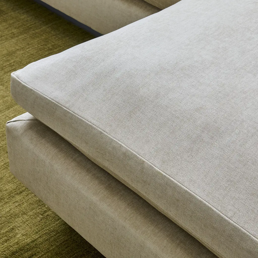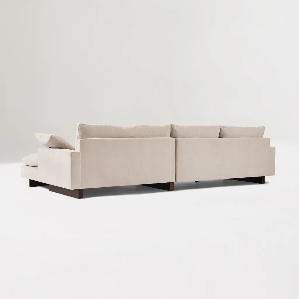This modern sectional is all about comfort. Pillowy-soft cushions top the spacious body. Kiln-dried, clean-lined frame has reinforced joinery. Hand-built frames with hand-finished upholstery.