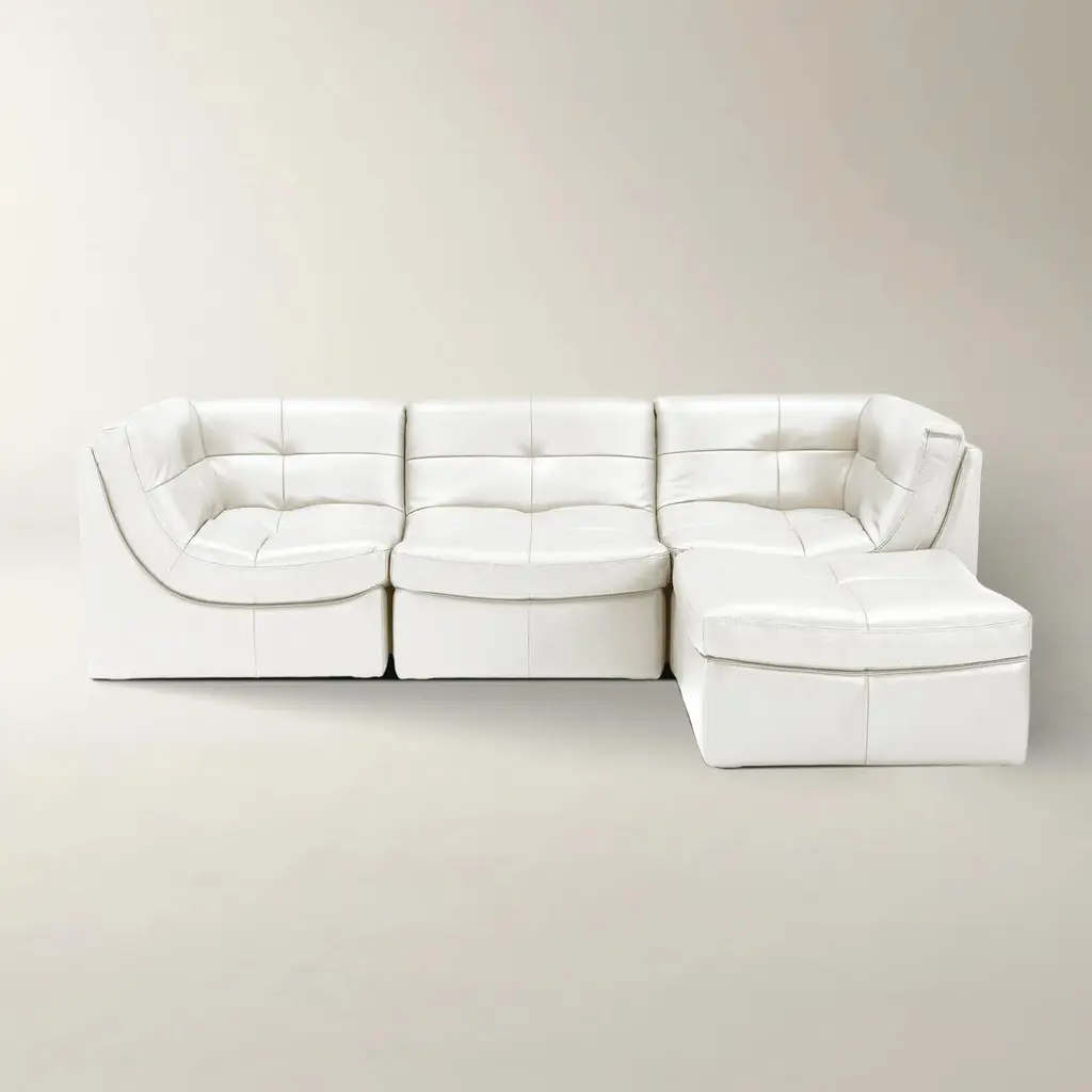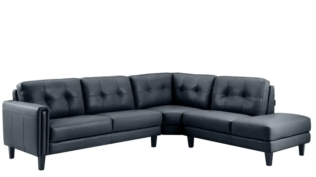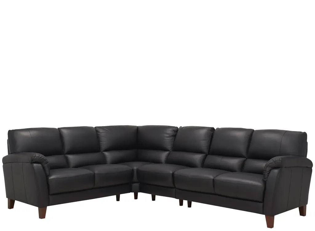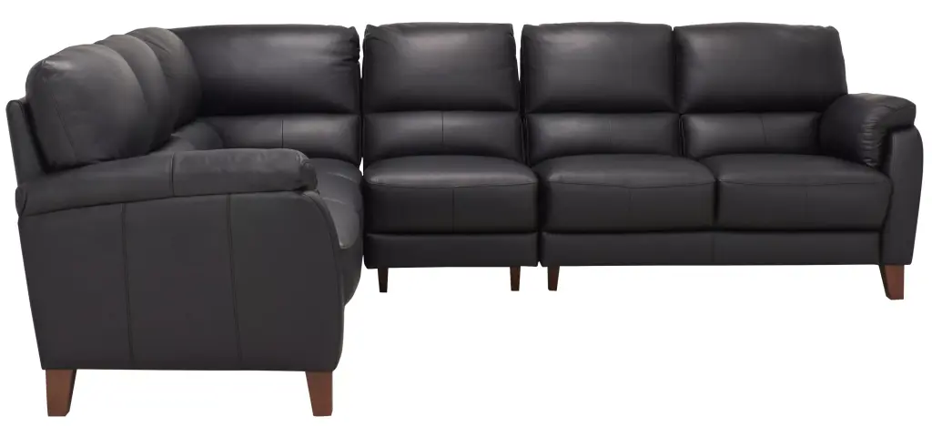 With just the right balance of comfort and polished style, the Harmony sectional brings a sense of urban chic to your living space. In a choice of black or dove gray, this sectional surrounds you in the softness of top-grain leather, luxuriant padded arms and oversized cushions, while its tailored silhouette and block feet give it a stately and sophisticated vibe.
