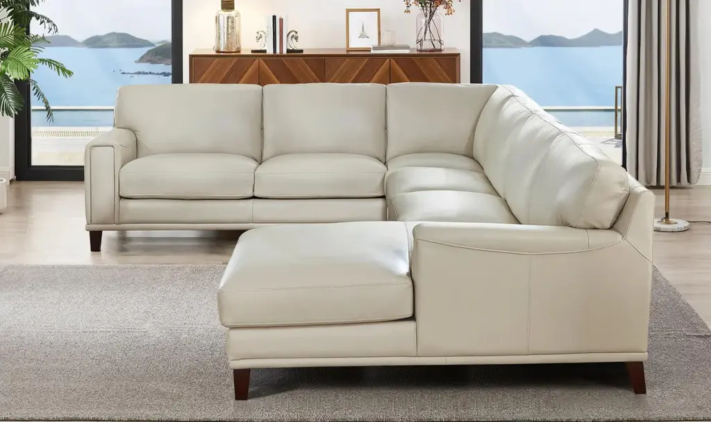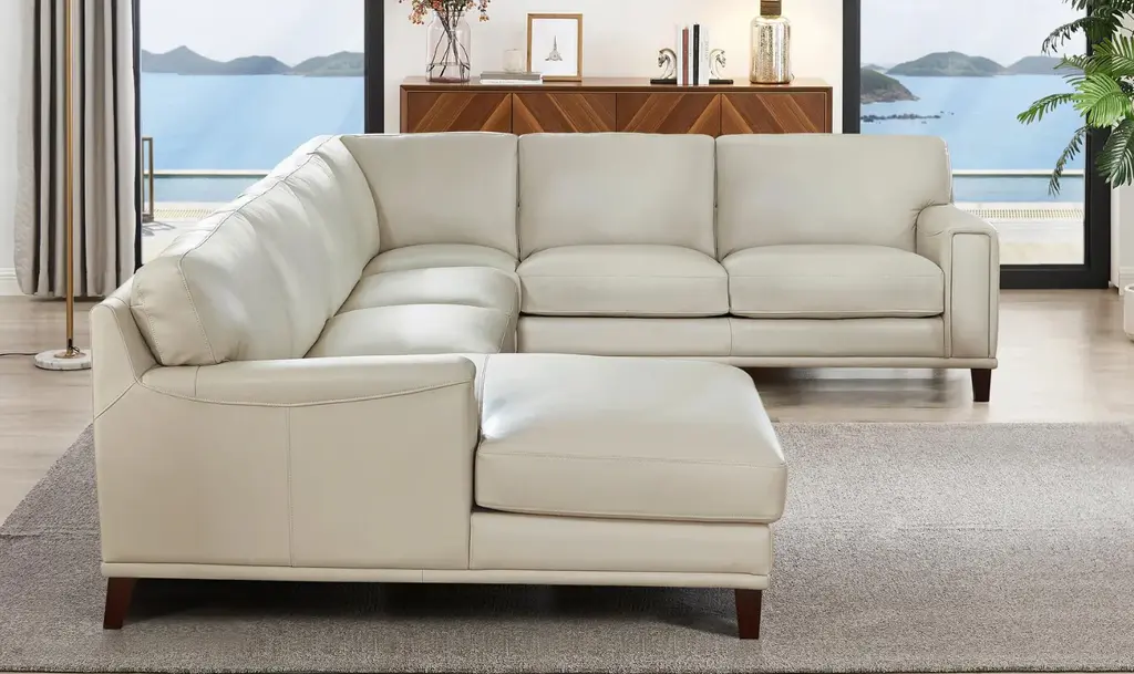 Hayward 5-Pieces Leather Sectional Sofa In Vanilla White
