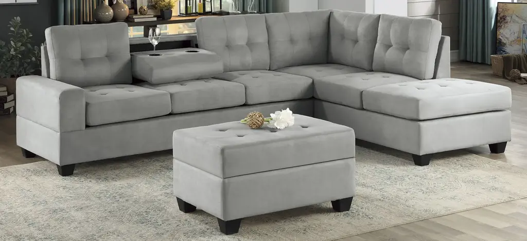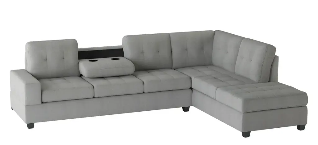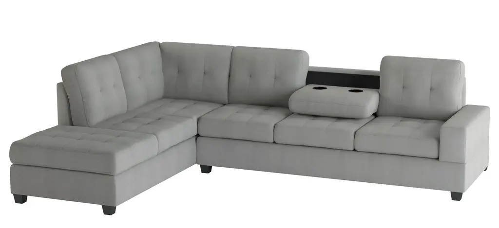 Providing a multitude of functional aspects, the Hedera 2-pc. sectional sofa will be the perfect addition to your modernly styled living room. With a design that allows for versatility this sectional will make placement within your space a breeze. The dropdown seatback provides dual cupholders and flat surface for secure placement of your beverages and snacks.