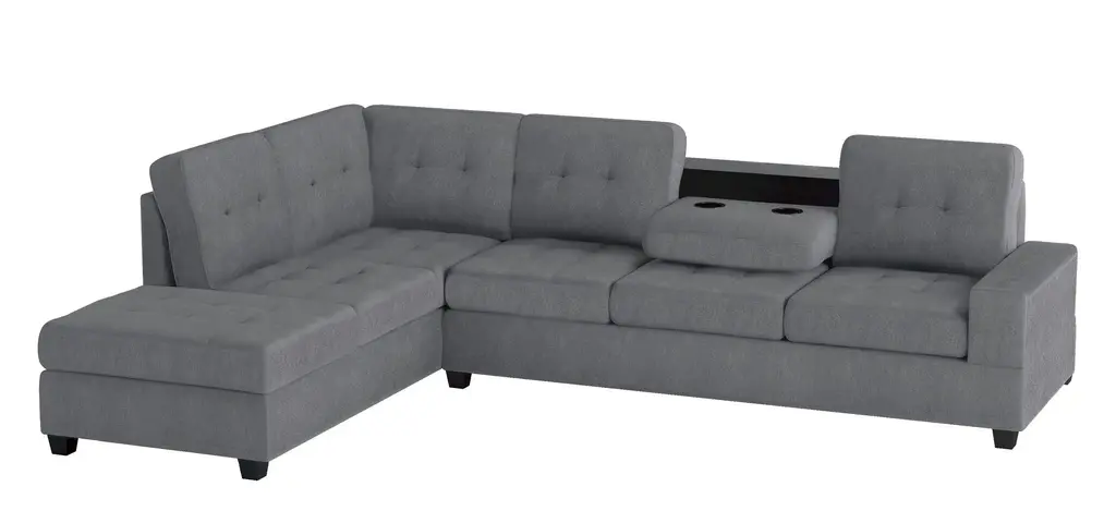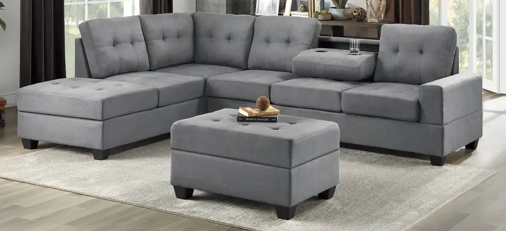 Providing a multitude of functional aspects, the Hedera 2-pc. sectional sofa will be the perfect addition to your modernly styled living room. With a design that allows for versatility this sectional will make placement within your space a breeze. The ottoman opens to reveal additional storage for your space, while the dropdown seatback provides dual cupholders and flat surface for secure placement of your beverages and snacks.