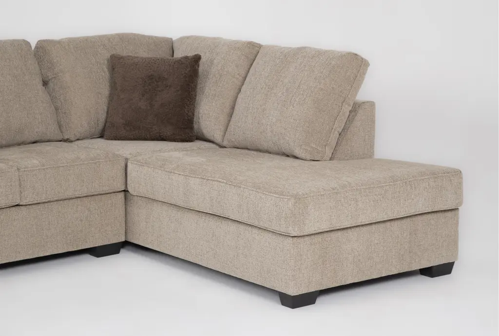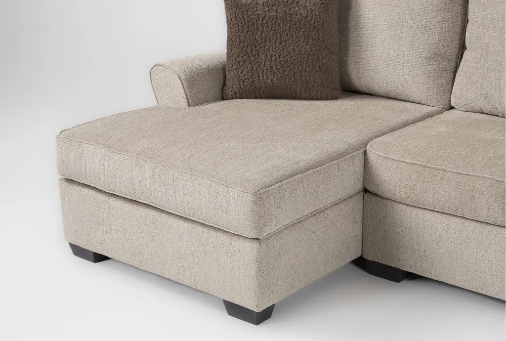 The Hobson Barley 3 Piece Sectional with Left Arm Facing Chaise & Right Arm Facing Corner Chaise is the perfect addition to your living room. With its casual style and soft fabric upholstery, this sectional offers both comfort and functionality. The neutral beige color makes it easy to coordinate with any decor, creating a welcoming and cozy atmosphere.