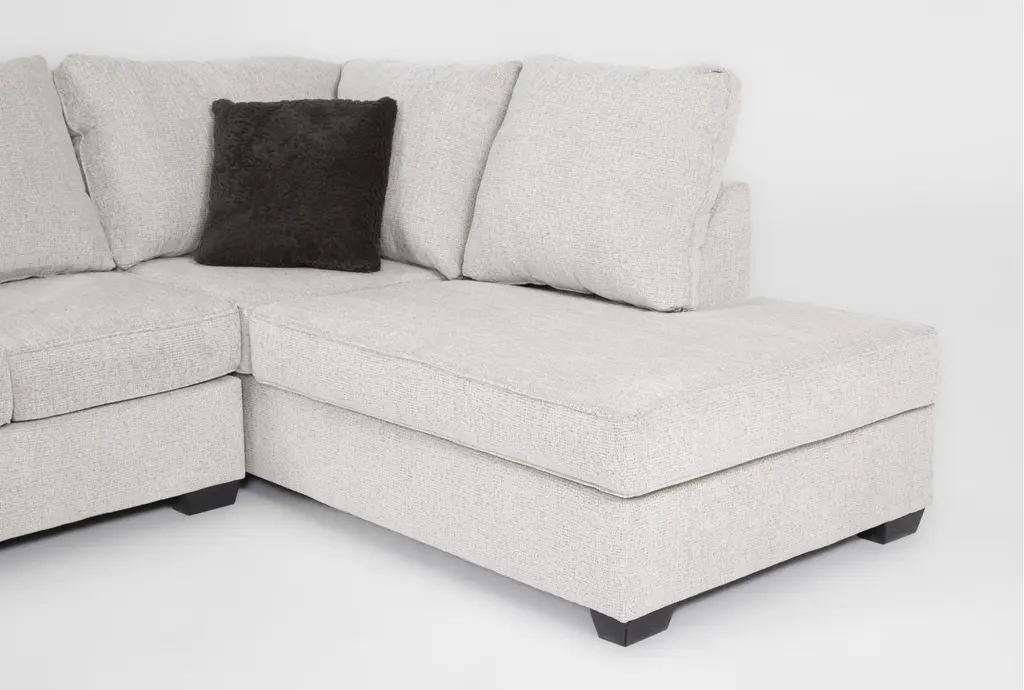Designed and developed by Living Spaces as an exclusive offering at an incredible value, our Hobson sectional brings cozy comfort to your living room. Sturdy construction and supportive seating ensure seamless relaxation, while 100% polyester chenille upholstery is durable and easy to clean. Loose, reversible cushions can be rotated for even wear and longevity, and multiple configuration and color options allow you to choose the perfect fit for your home.