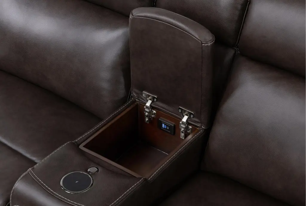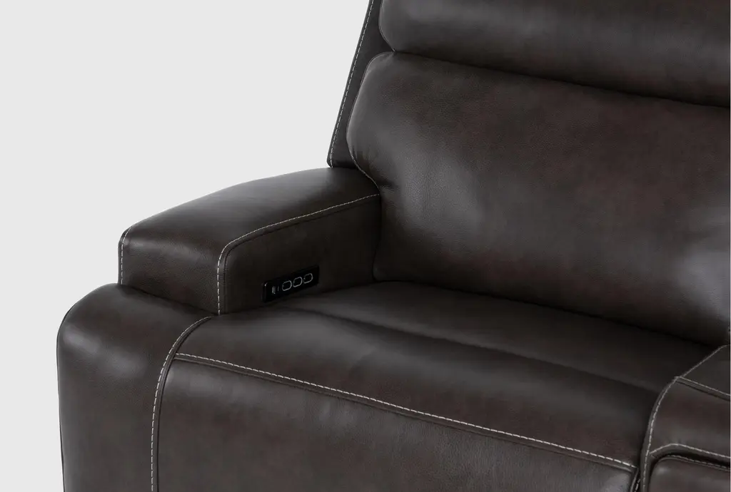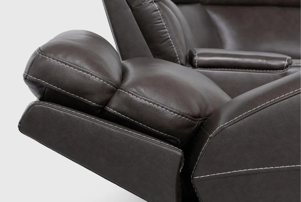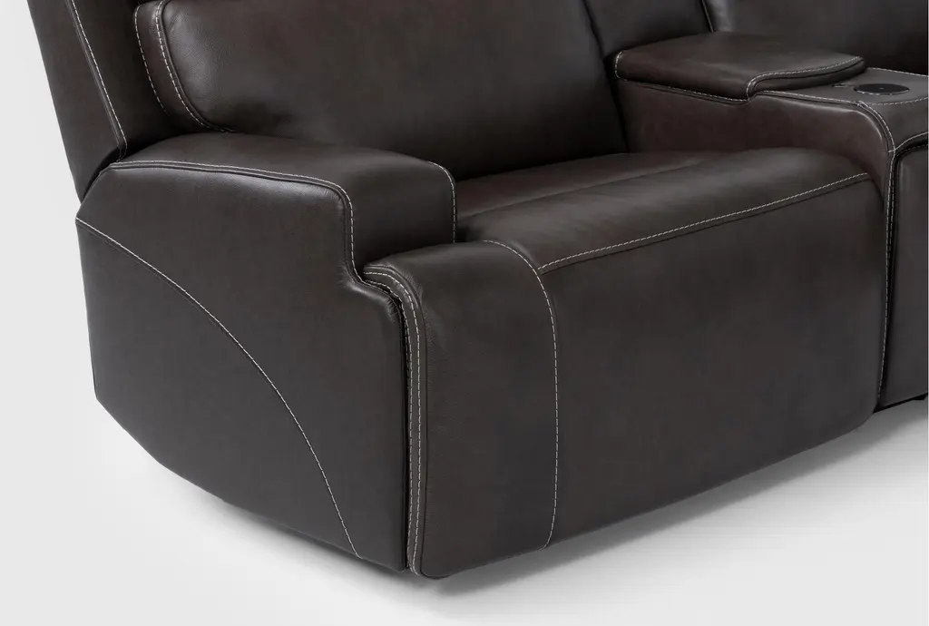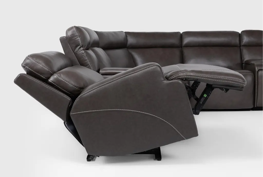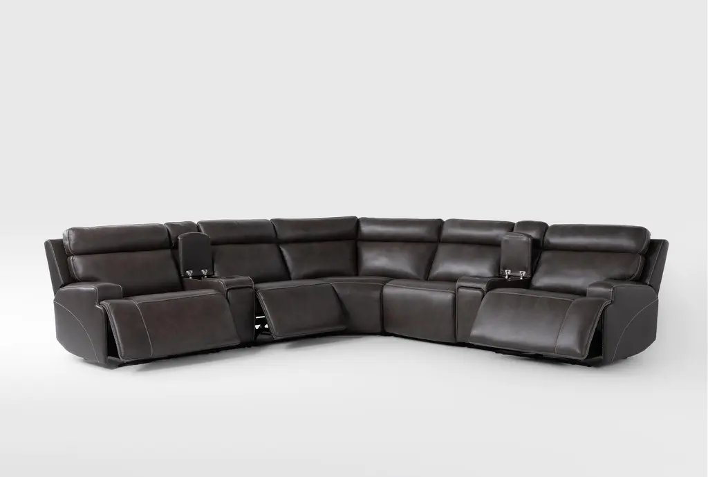 Hugo Brown Leather 127" 7 Piece Reclining Sectional With 2 Consoles With Power Headrest Power Lumbar & Usb
