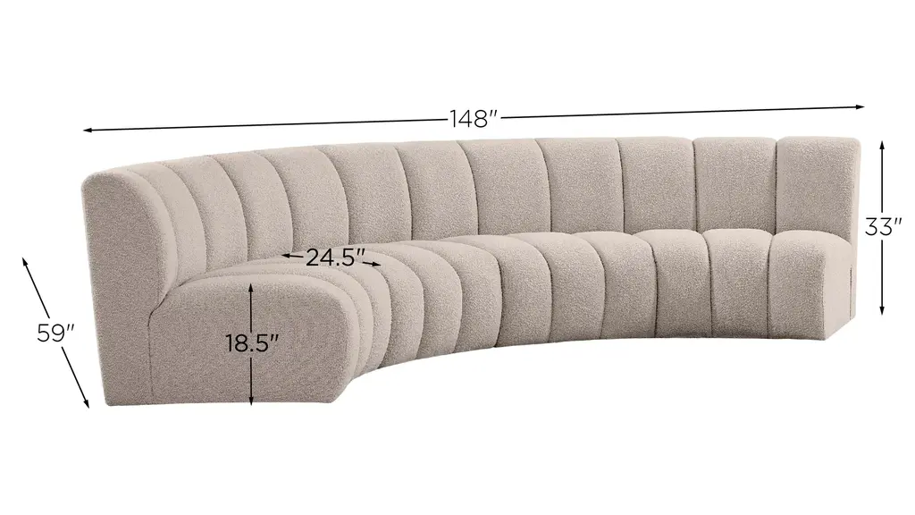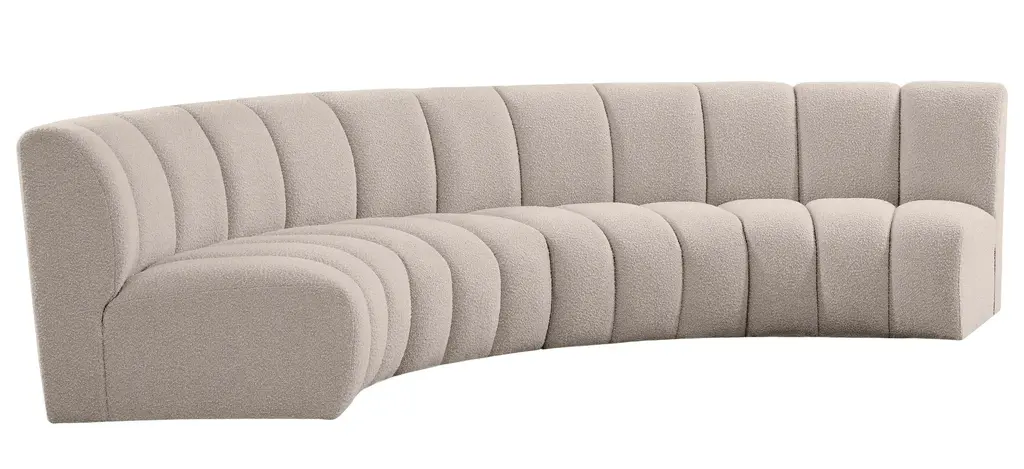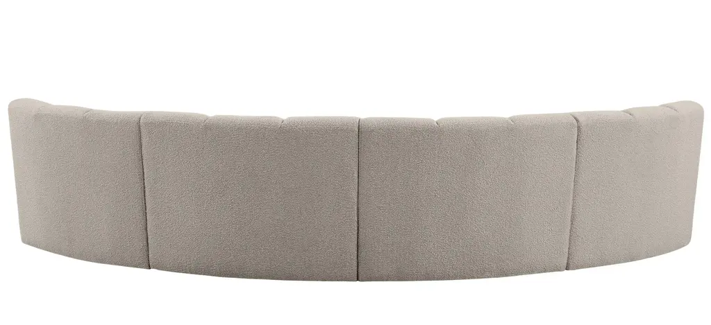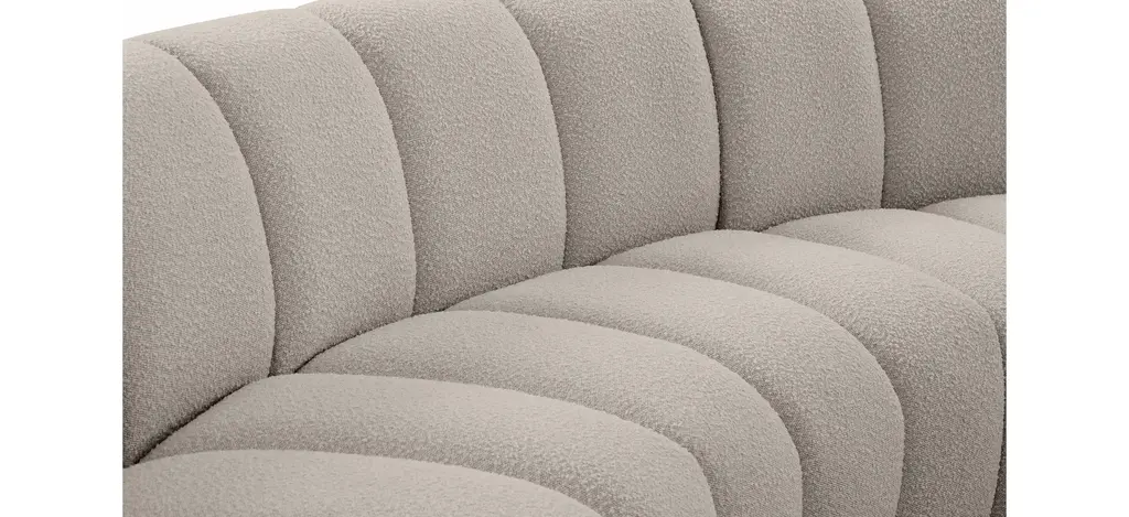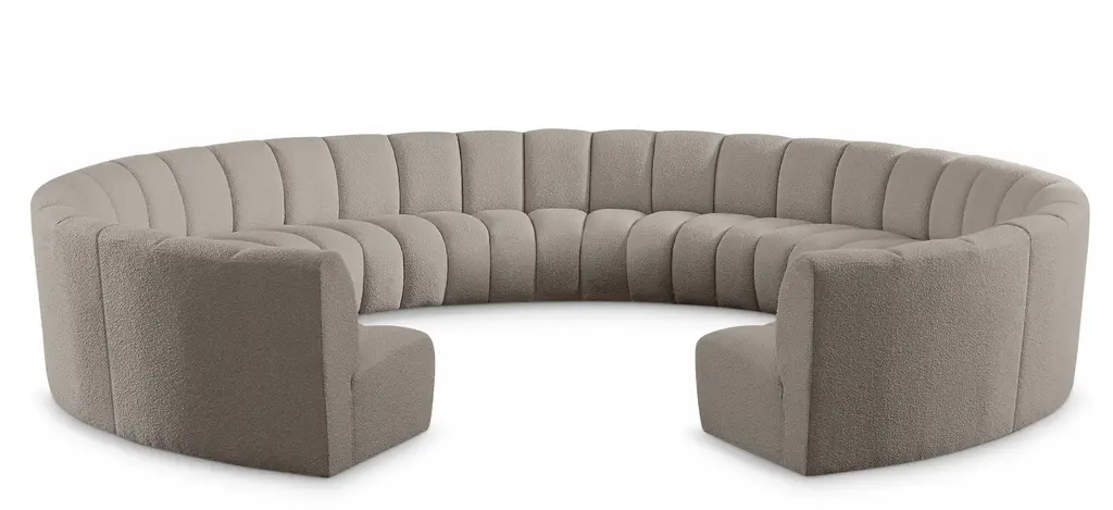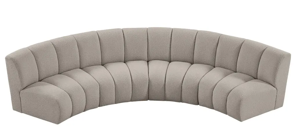 The Infinity 4-pc. Modular Sectional is the best possible seating solution for your gang. Rich brown boucle fabric feels welcoming and soft to the skin, so you stay seated comfortably for the big game or while watching your favorite programs. Deep channel tufting adds to the longevity and durability of this modular chair while giving it texture.