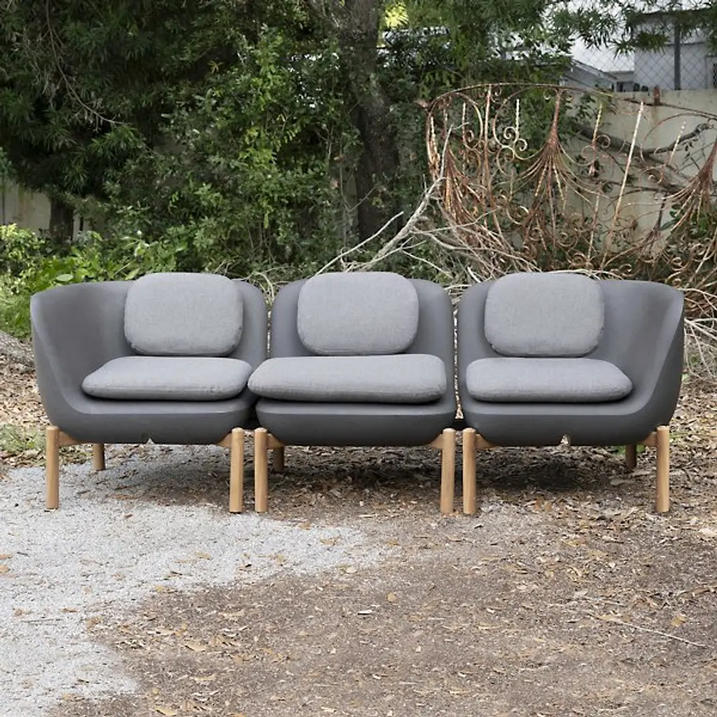 The Inou Elements Modular 3 Seater Sectional Sofa from Crescent Garden InOu serves as the centerpiece for outdoor lounge areas with its sculptural back design that creates a focal point in any outdoor space. This sofa functions independently for smaller gatherings or combines with armchairs, ottomans, and lounge chairs to accommodate larger groups. Recyclable polyethylene construction ensures long-term durability, while removable Sunbrella cushion covers simplify maintenance. The modular approach enables reconfiguration as entertaining needs change, making this piece ideal for patios, decks, or garden rooms.