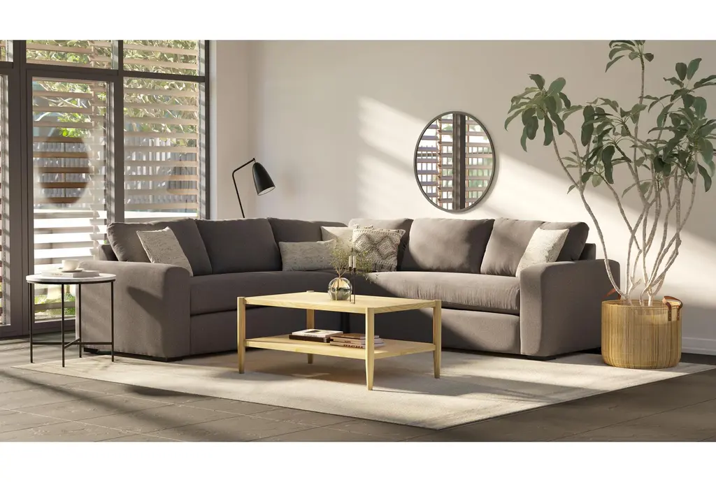 Introducing the Isabella II Charcoal 108" 3 Piece Sectional With Right Arm Facing Full Sleeper, a perfect addition to your modern living space. This sectional combines comfort and functionality with its smart design and spacious seating. The grey hue and smooth fabric create a cozy atmosphere in any room.