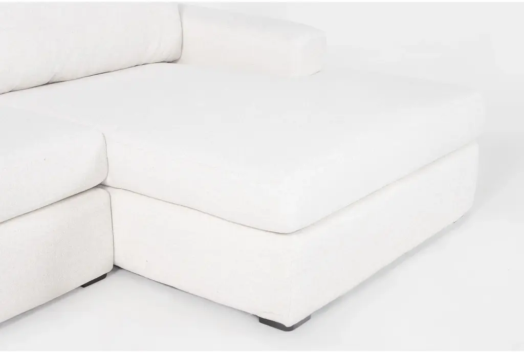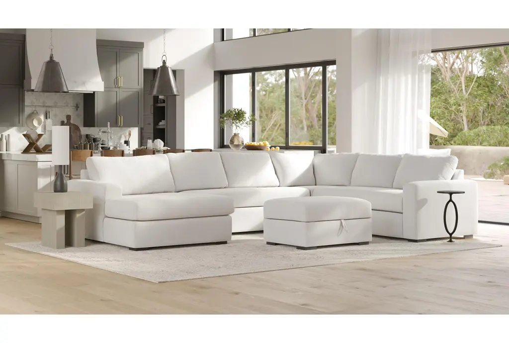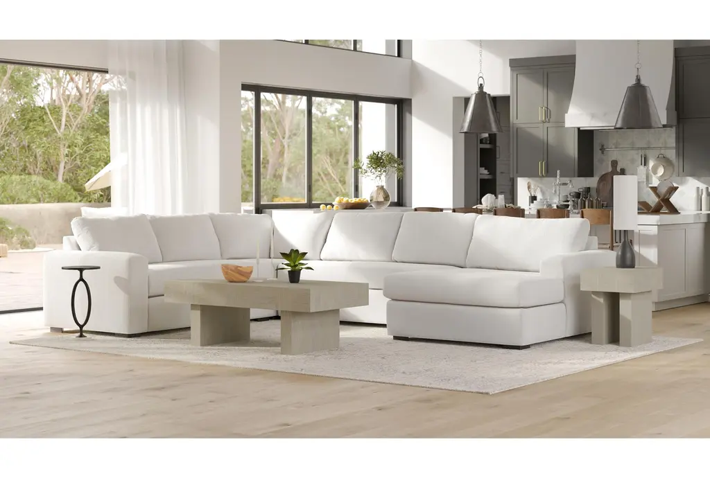 The Isabella II Cream Beige 146" 4 Piece Sectional With Right Arm Facing Chaise is the perfect addition to your living room. This sectional combines comfort and functionality in its modern design. The loose reversible back cushions offer versatility and convenience.
