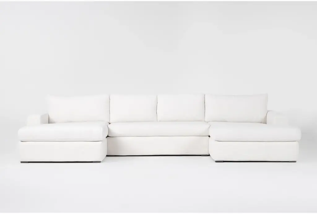 Isabella Ii Cream Beige 154" 3 Piece Dual Chaise Sectional With Armless Loveseat | Symmetrical | Fabric