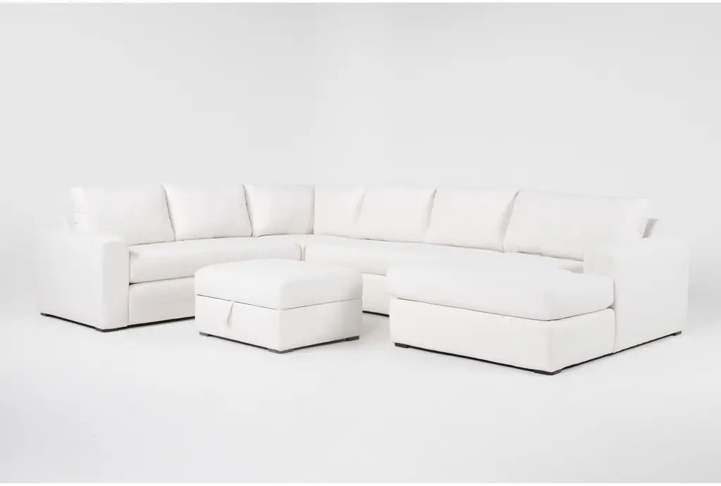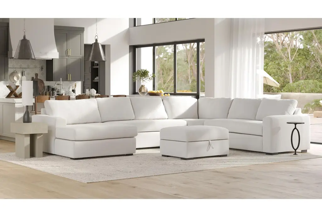 Isabella Ii Cream Beige 157" 4 Piece Sectional With Left Arm Facing Chaise Wedge Corner & Ottoman | Fabric